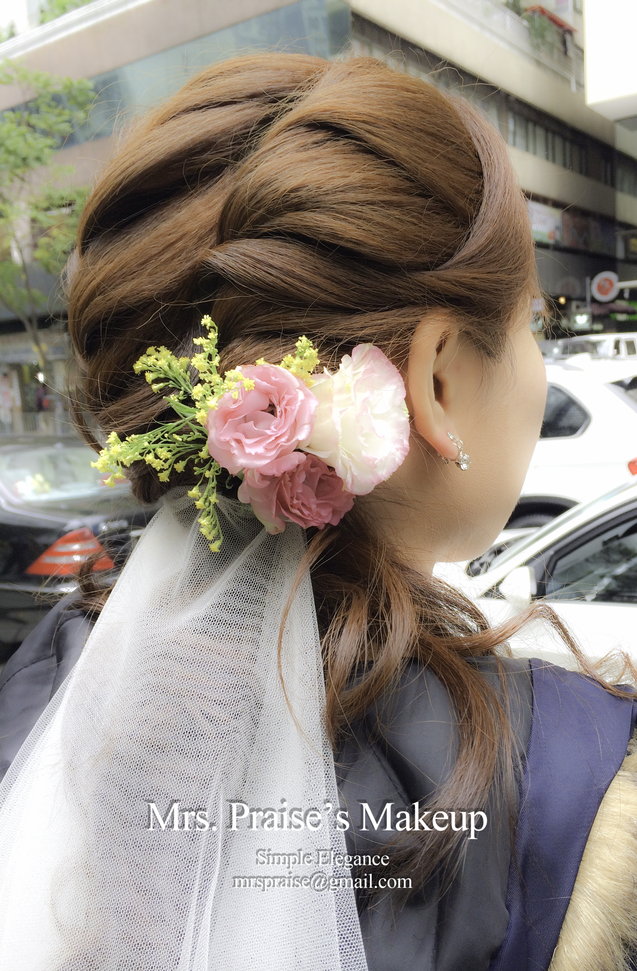 Alice在家化妝後,直接到婚姻註冊處,朋友們都來祝福一對新人。教會朋友說Alice的化妝和髮型又自然又靚,讓我開心不已,只要她靚靚出嫁我就心滿意足了。其實除了化妝師的努力外,新娘子的努力同樣重要。皆因Alice試妝後,按照我的建議努力護膚和使用面膜,她更特地把髮色染淺用以配合髮型,大日子當天整體效果很好呀!