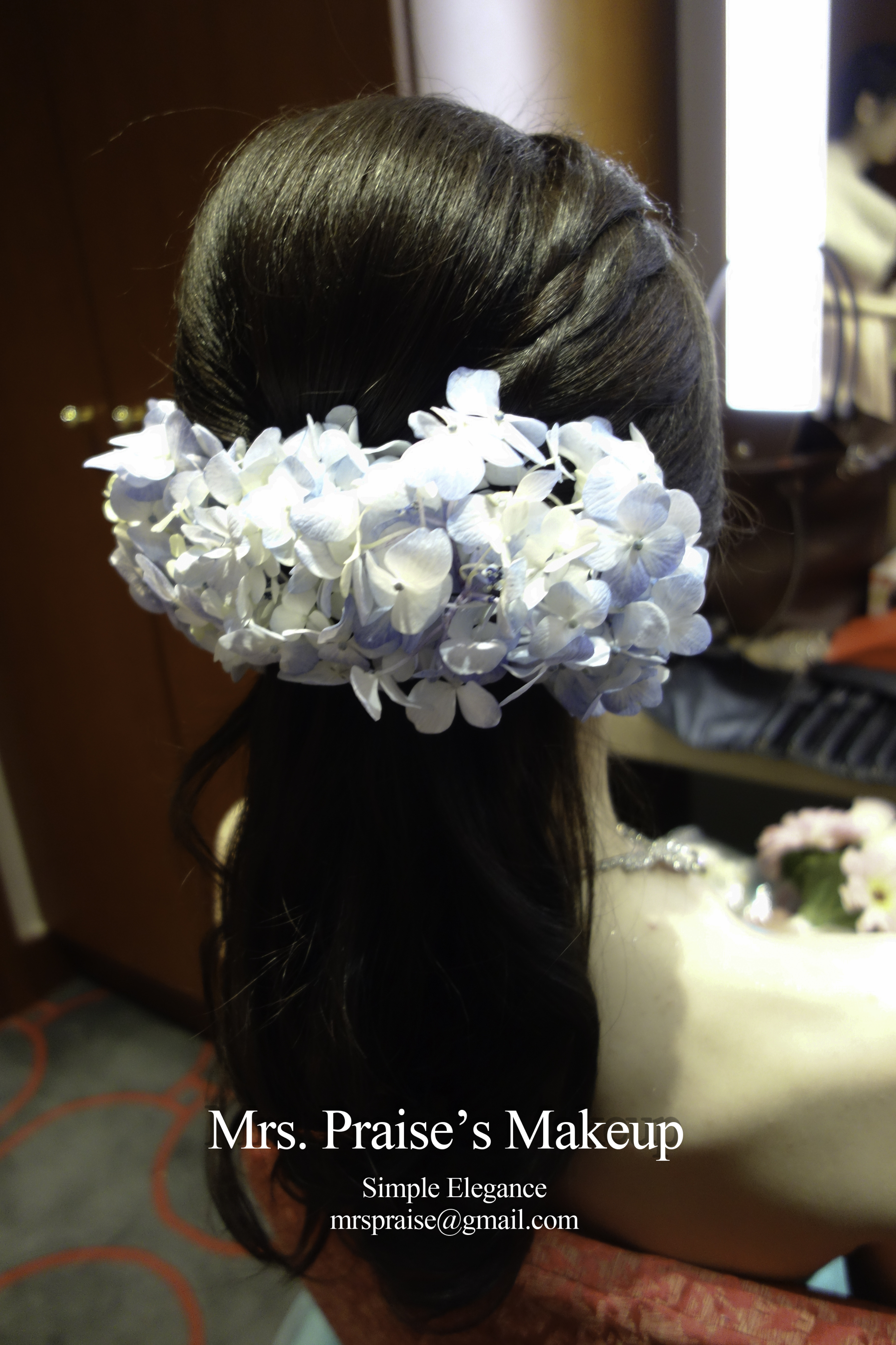 Wylie對造型很有要求,婚前很努力做research、找reference。事前我也看了很多資料,希望讓她有一個美好的大日子回憶。後來她告訴我喜歡當日所有造型,鮮花造型更深得她喜愛,這時我才放下了心頭大石呀!努力是不會白費的!