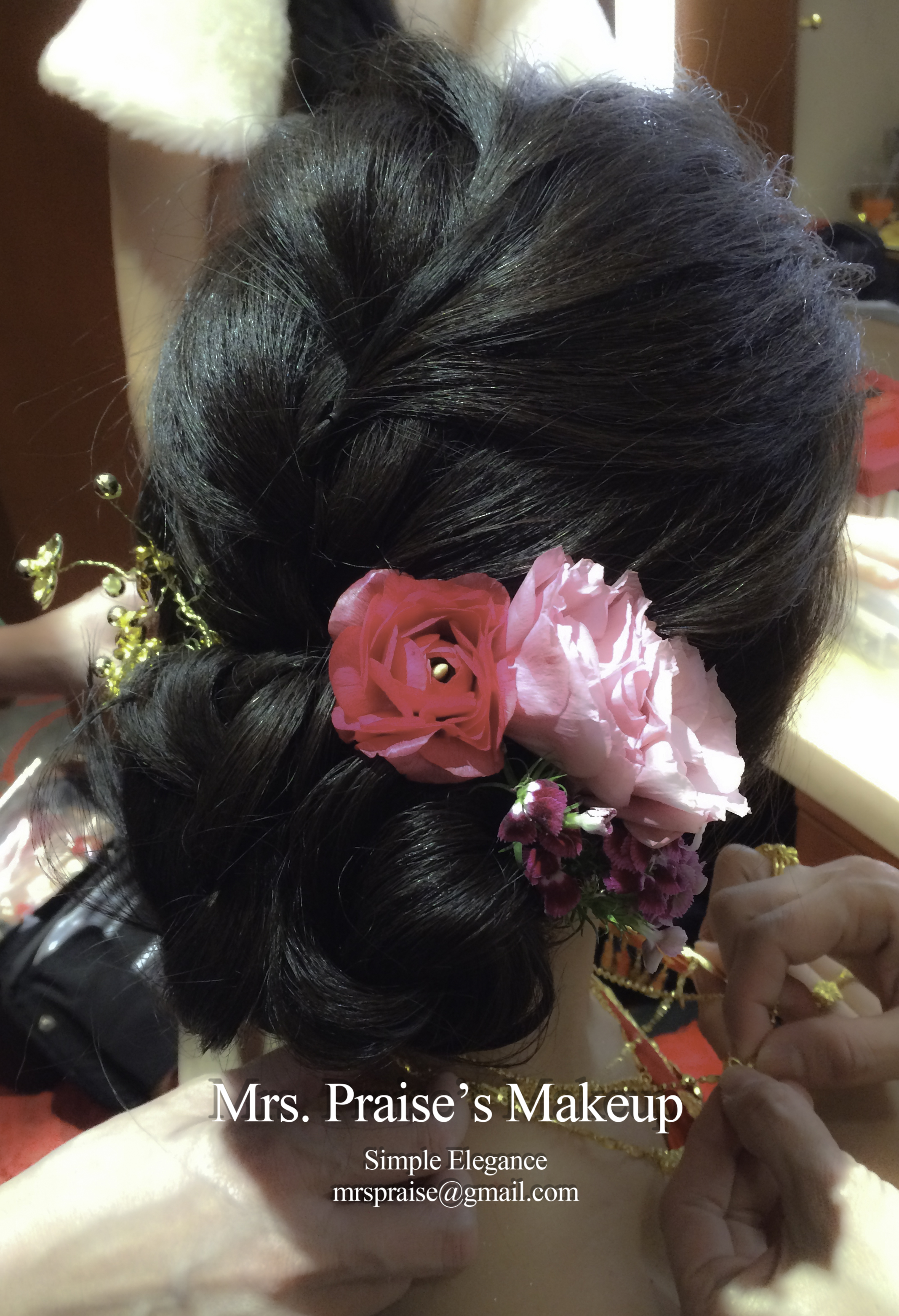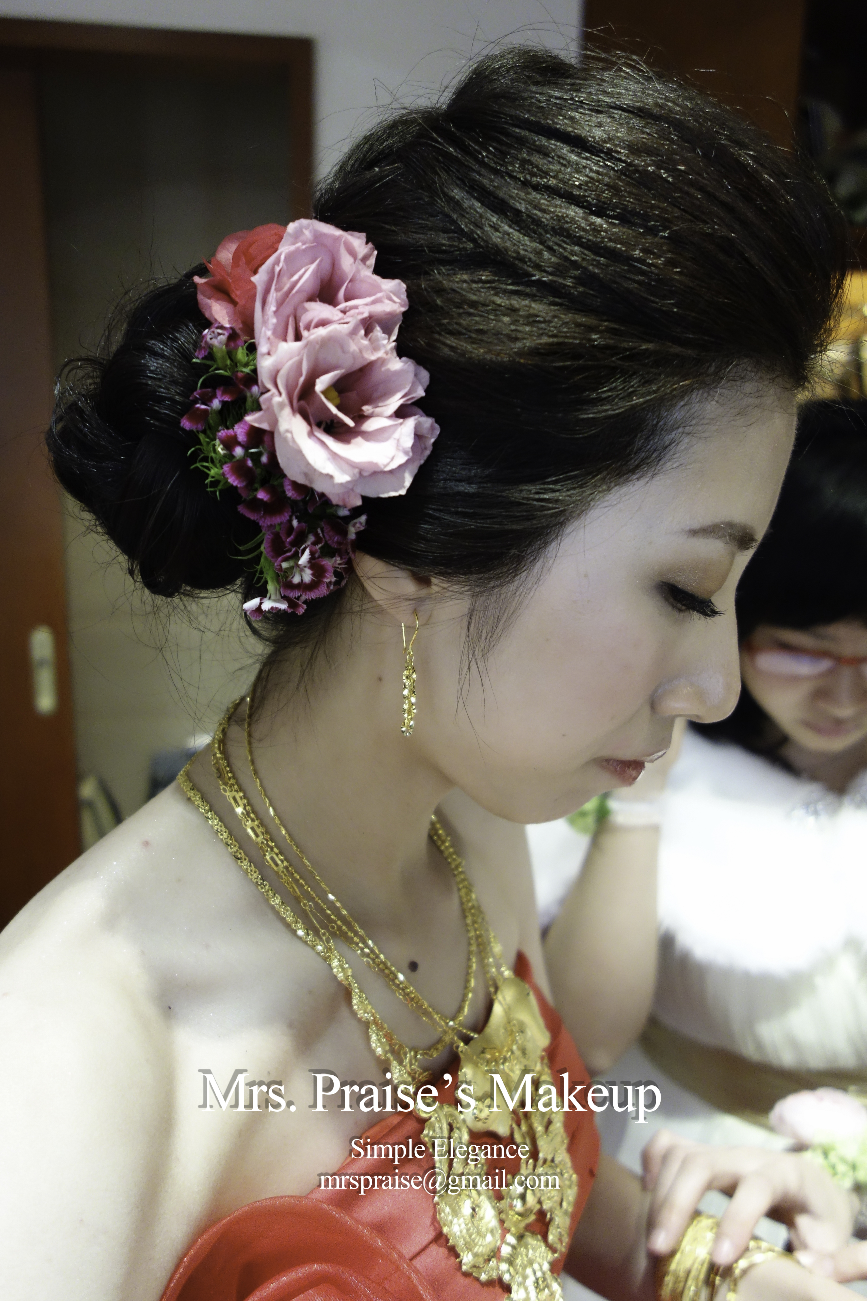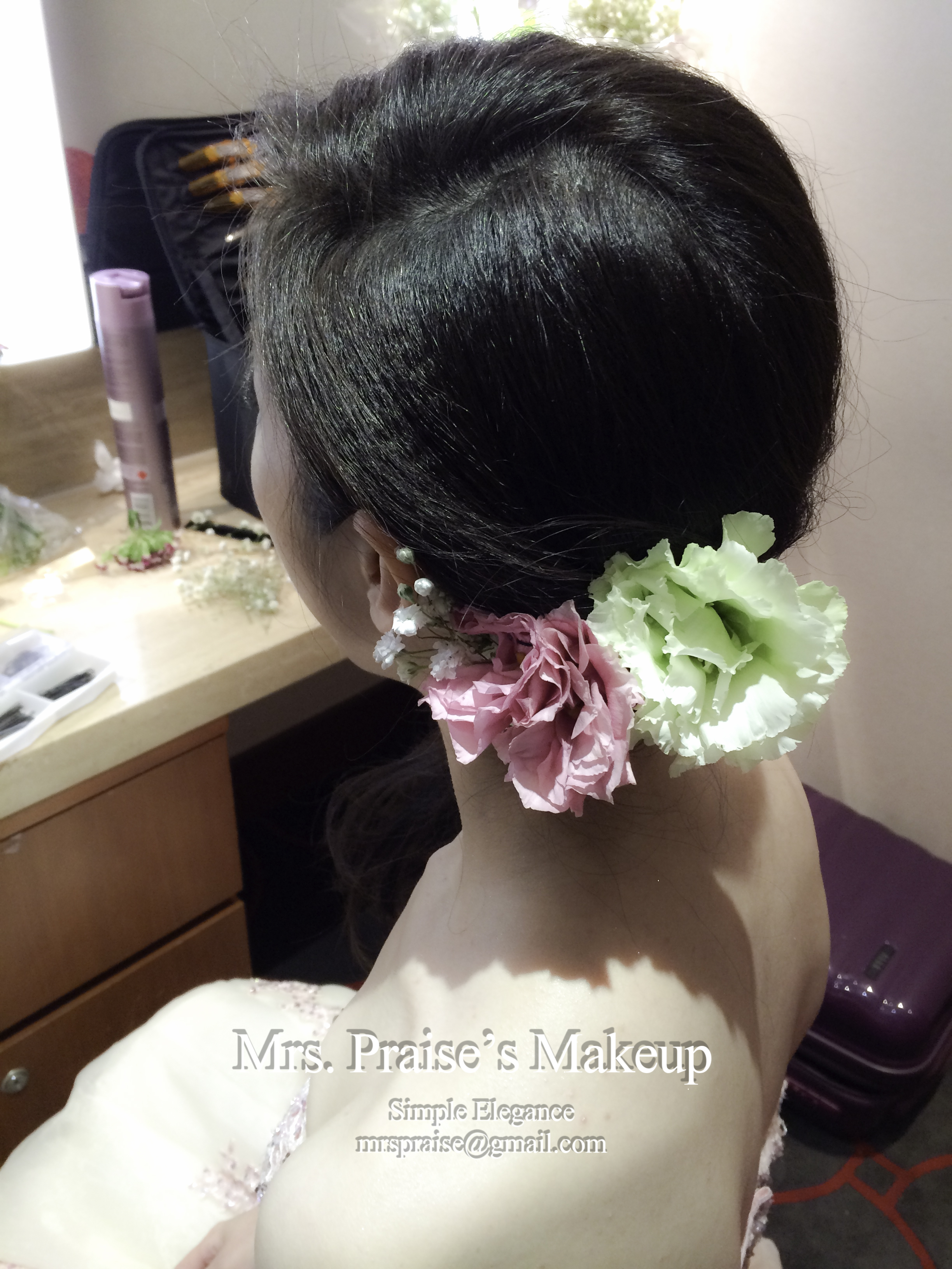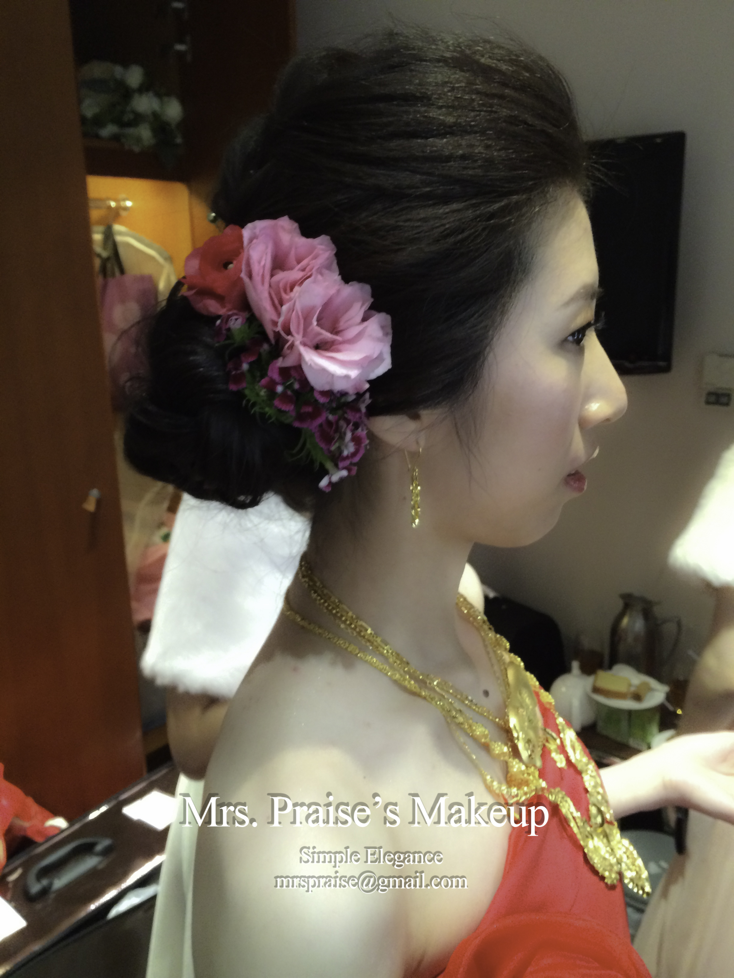 敬酒造型!這是Wylie要求的側髻造型,加上鮮花是立即變得SWEET了。