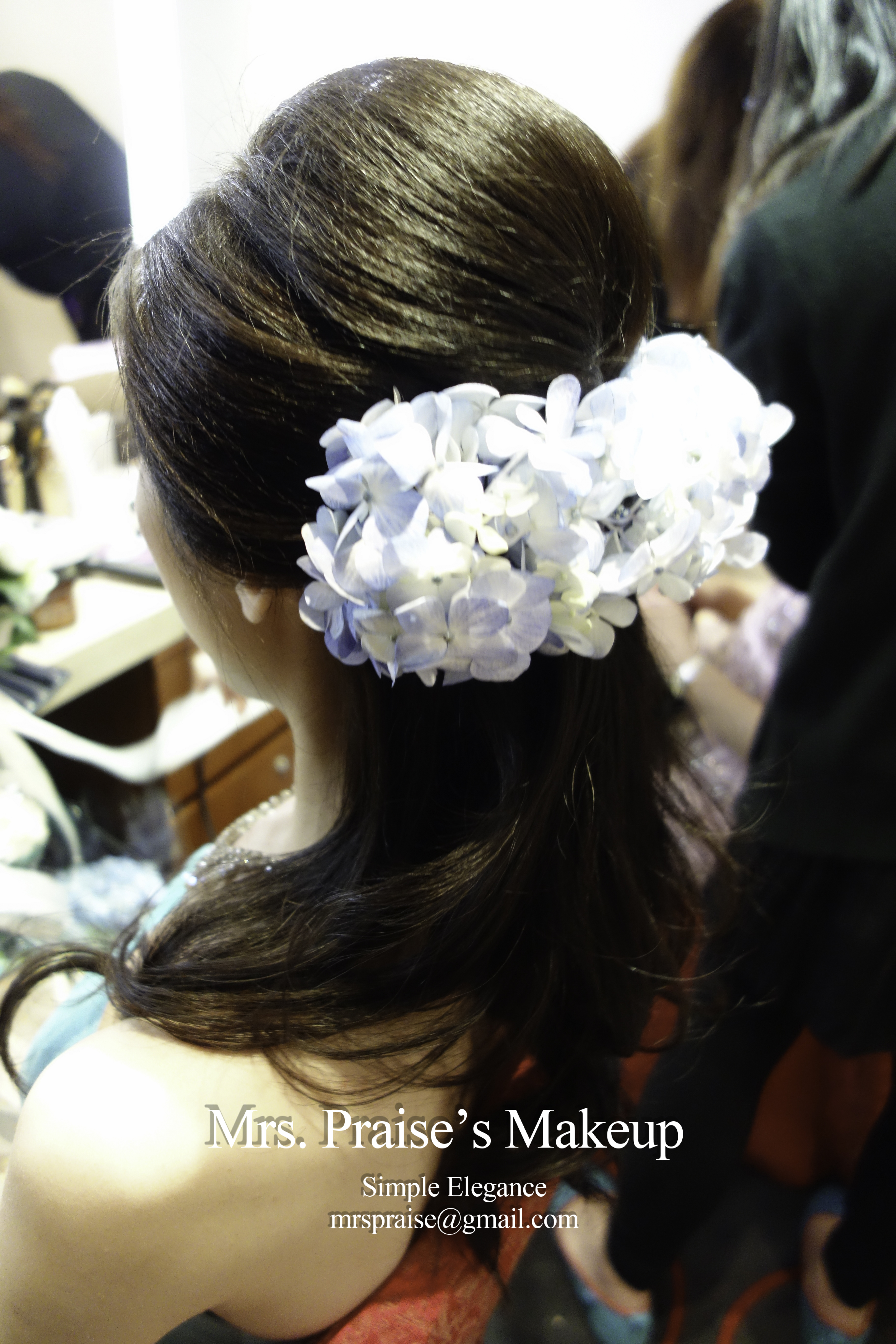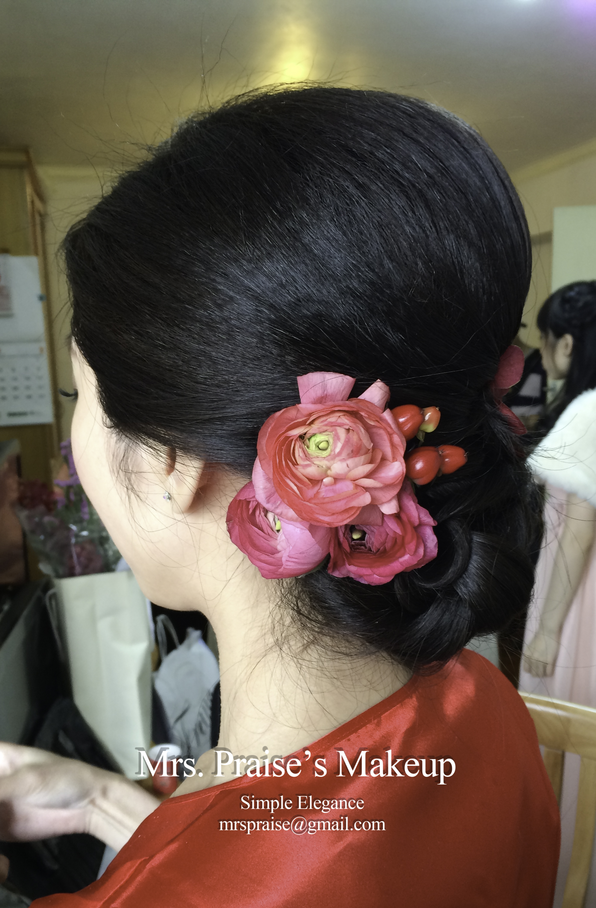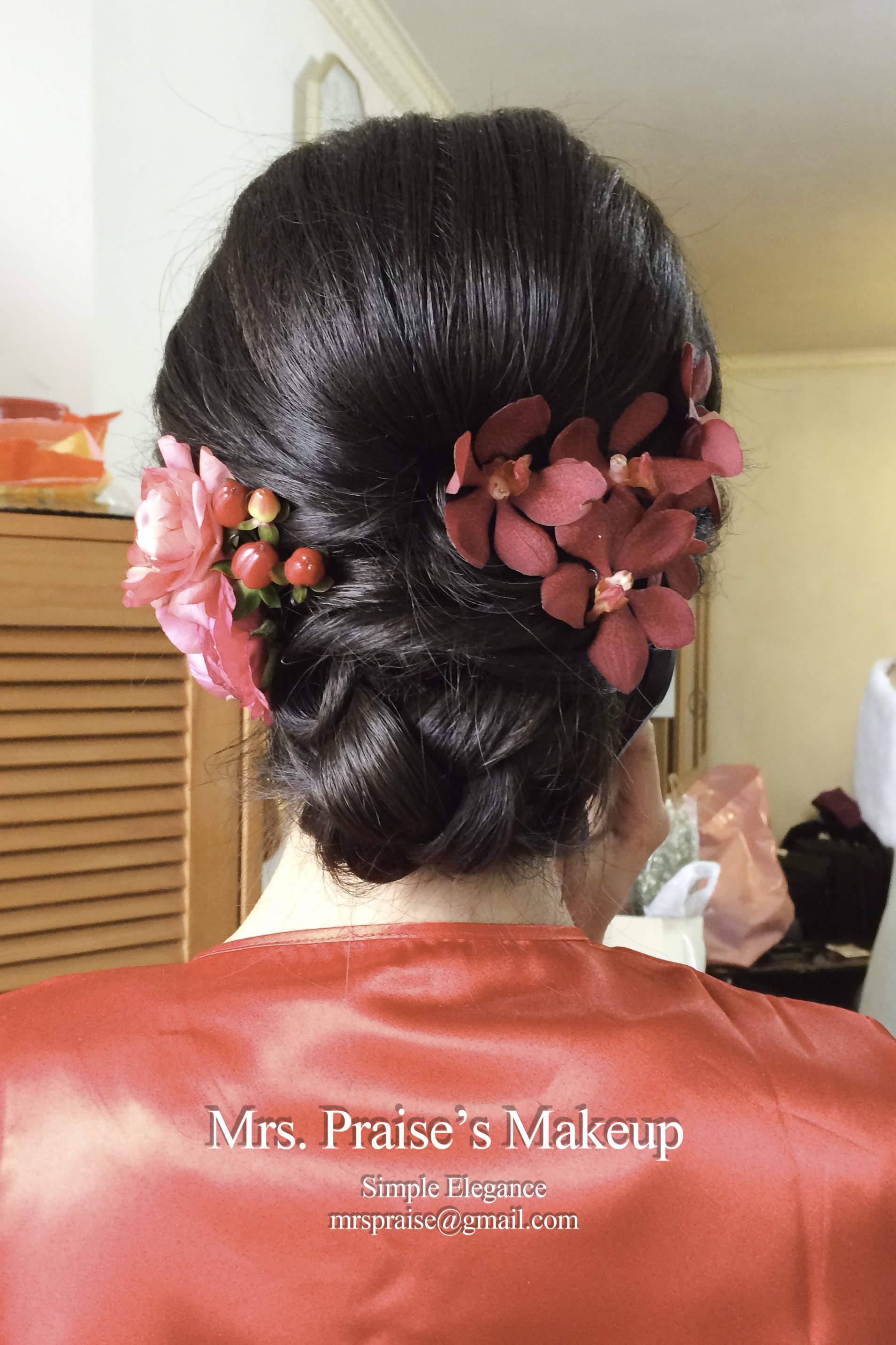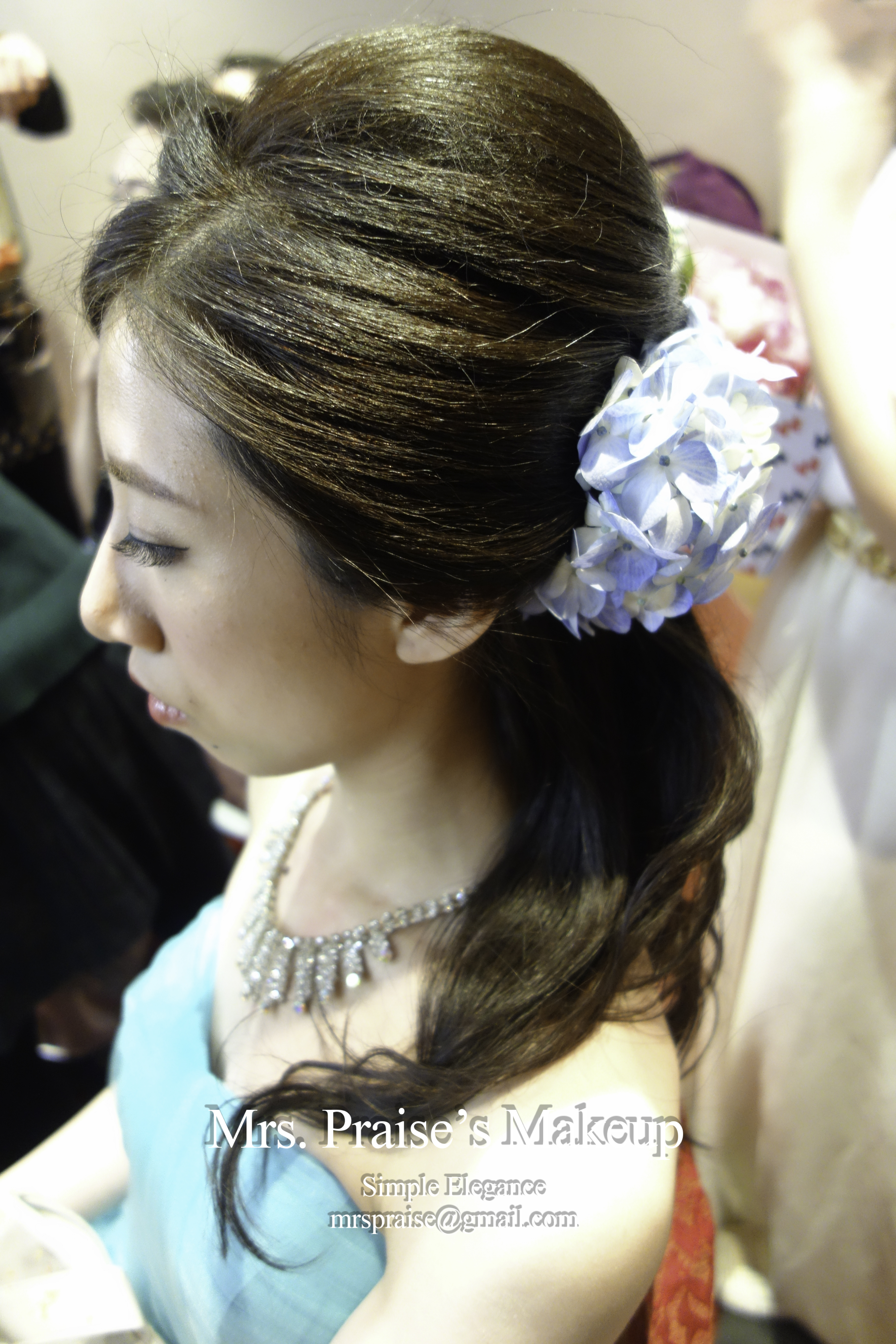 敬酒造型!這是Wylie要求的側髻造型,加上鮮花是立即變得SWEET了。