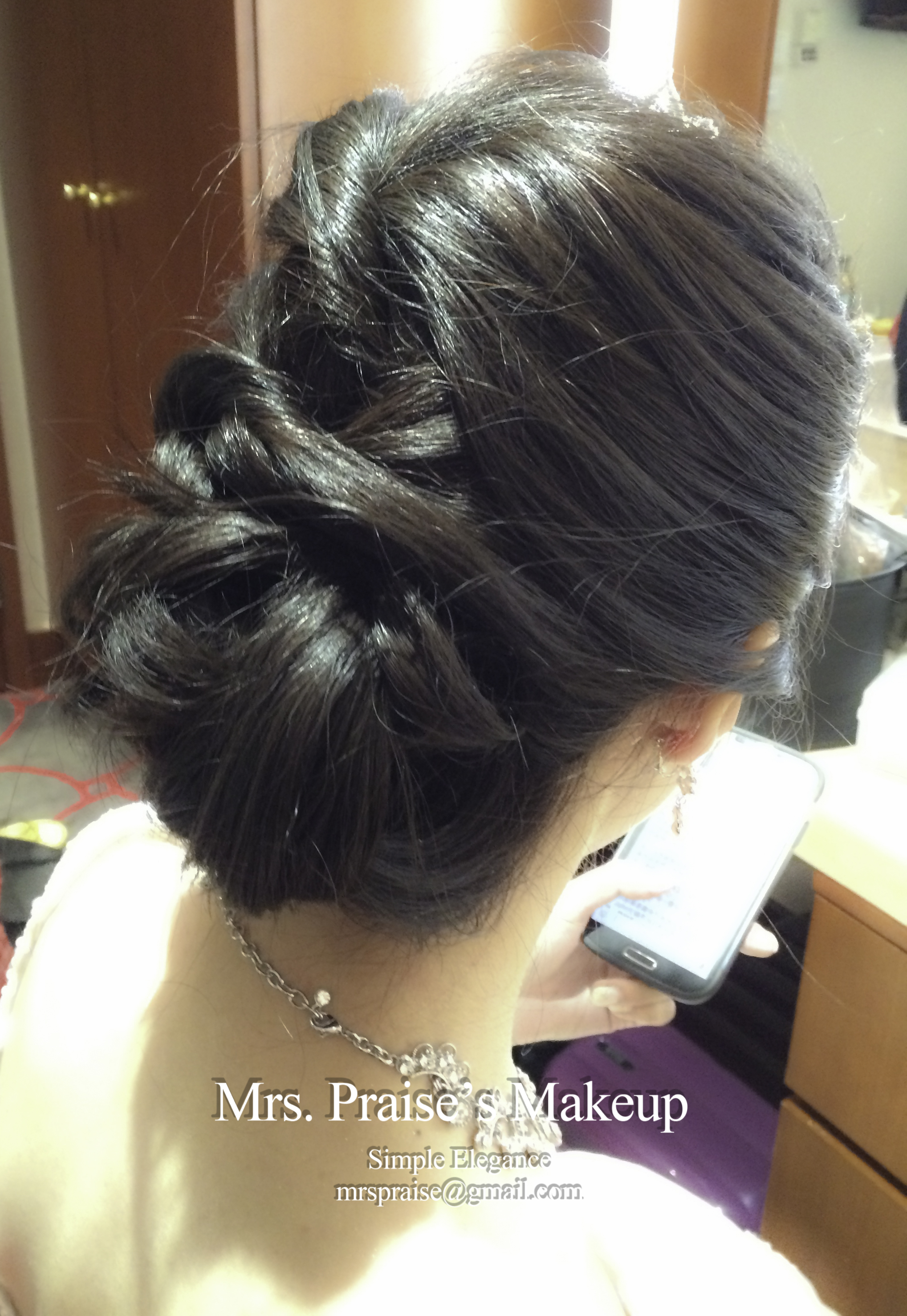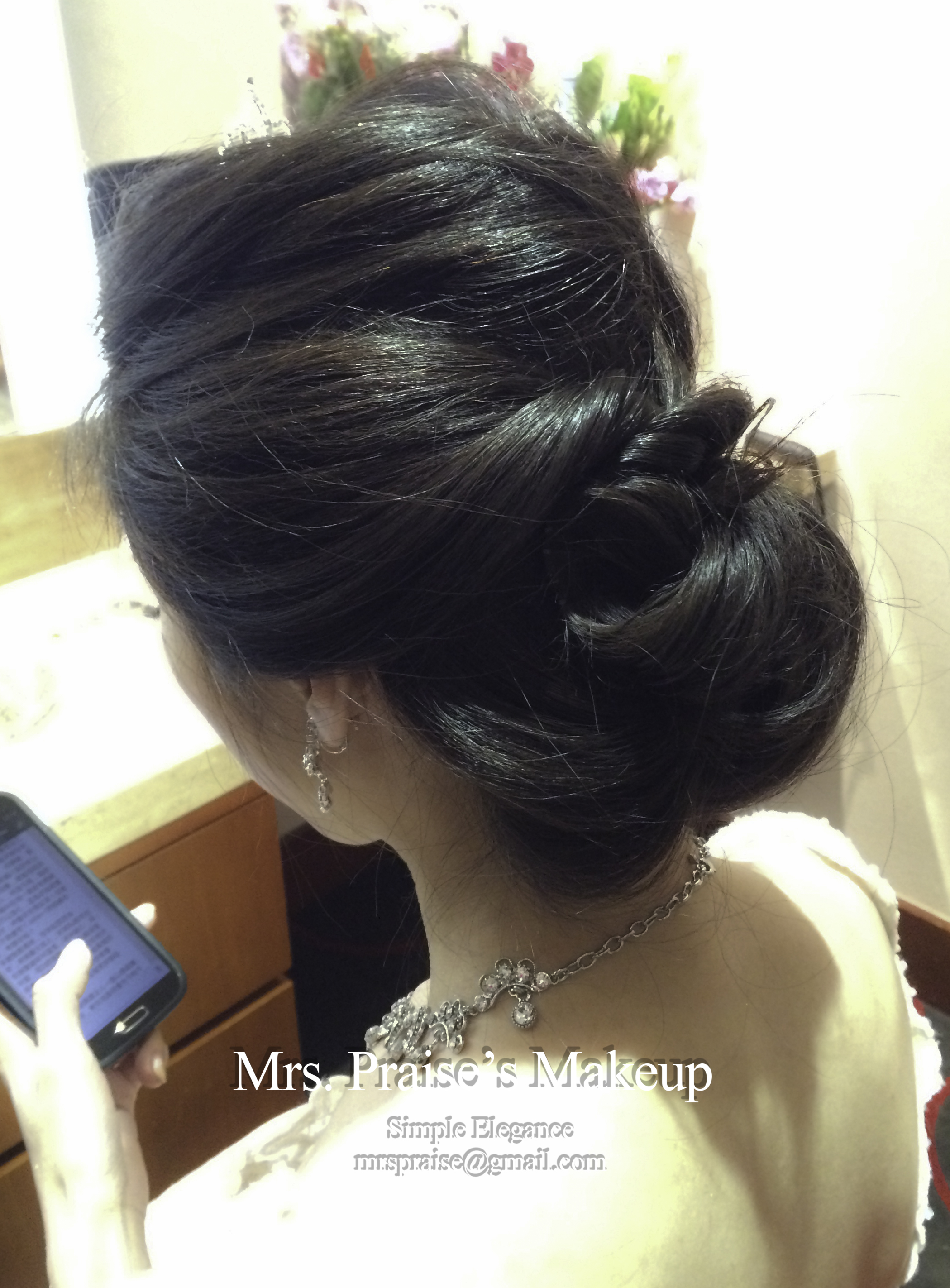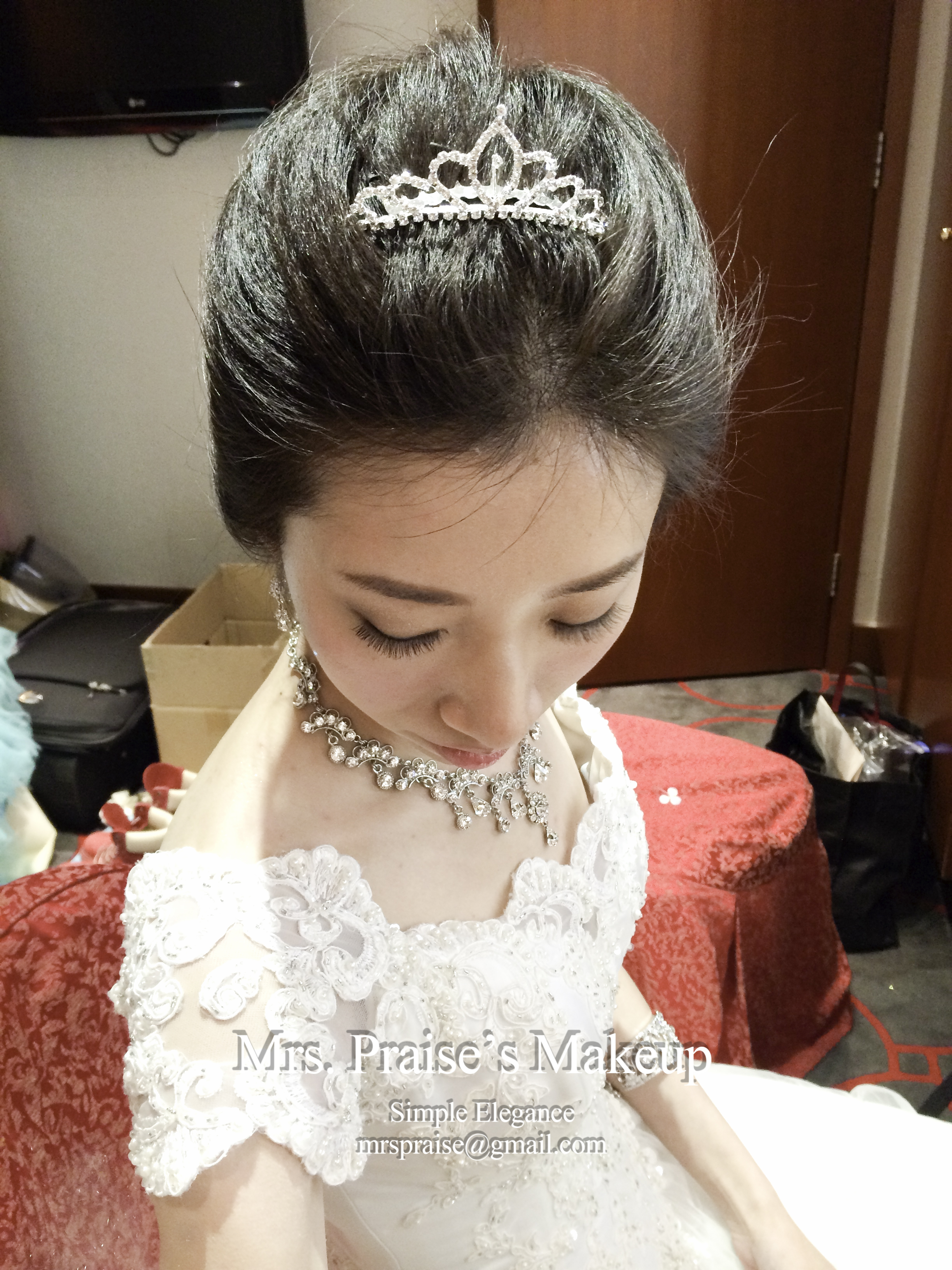 進場喇!Wylie想用自備的皇冠,為了看起來更ELEGANT,我造了這個盤髮造型。