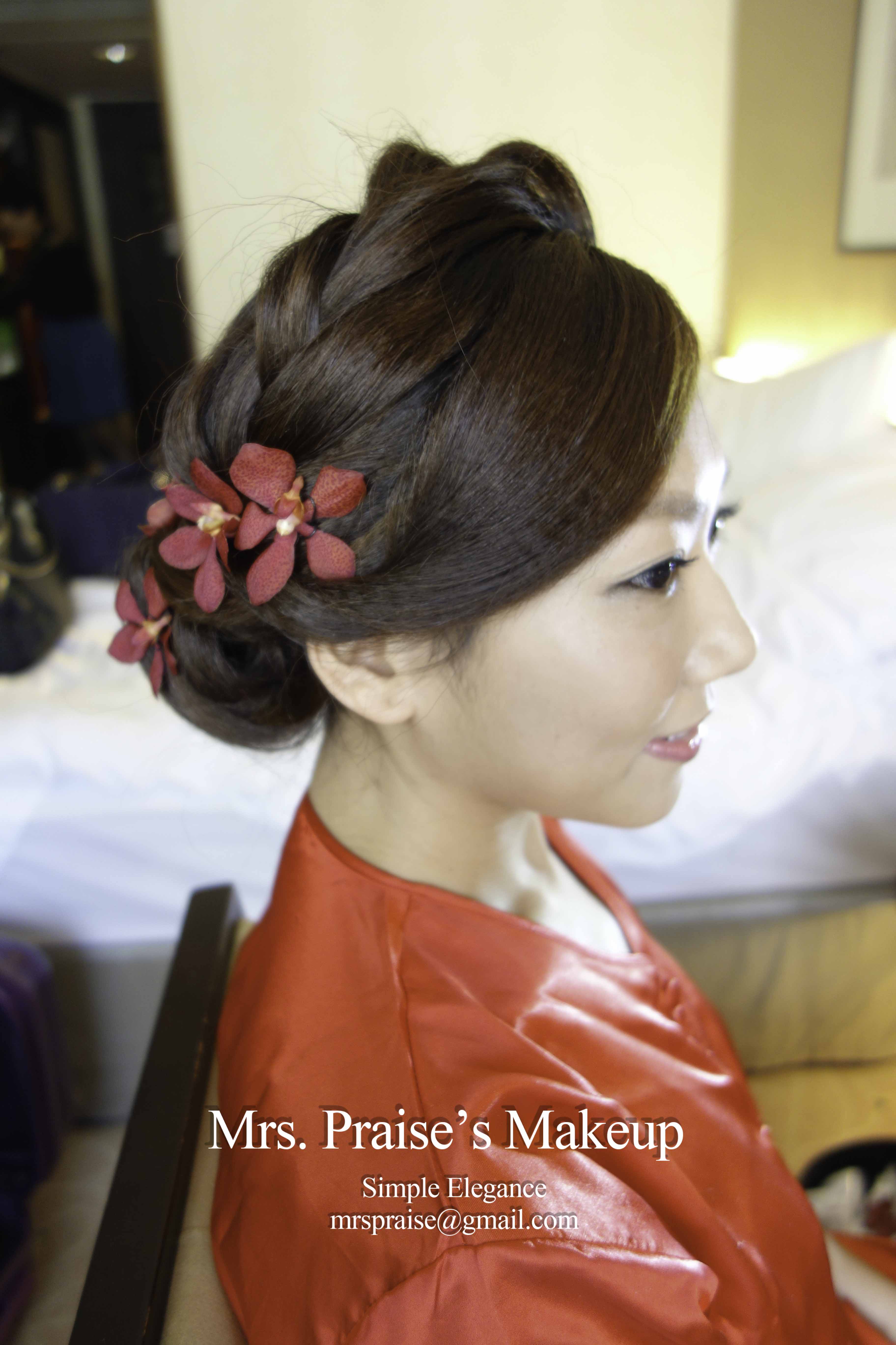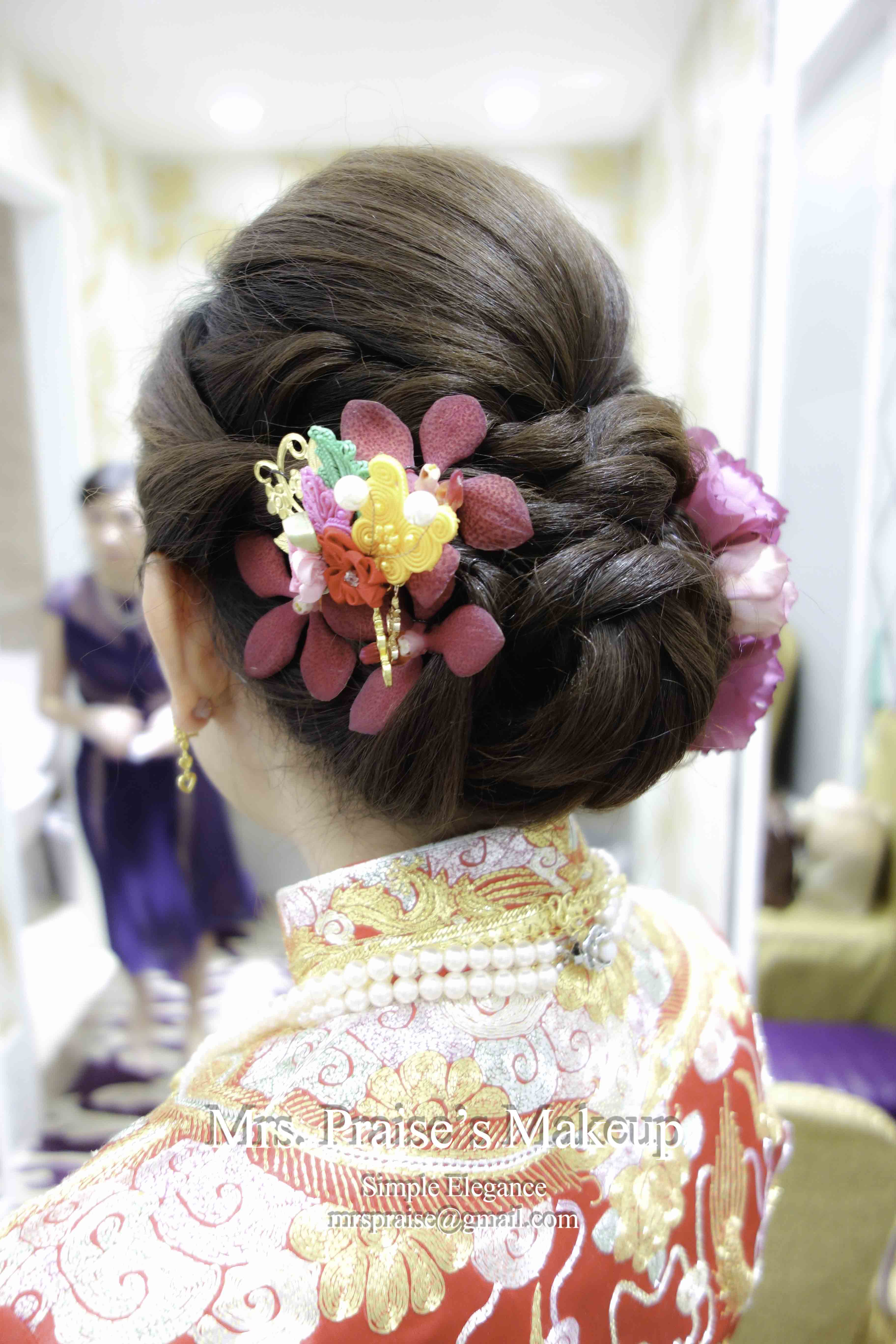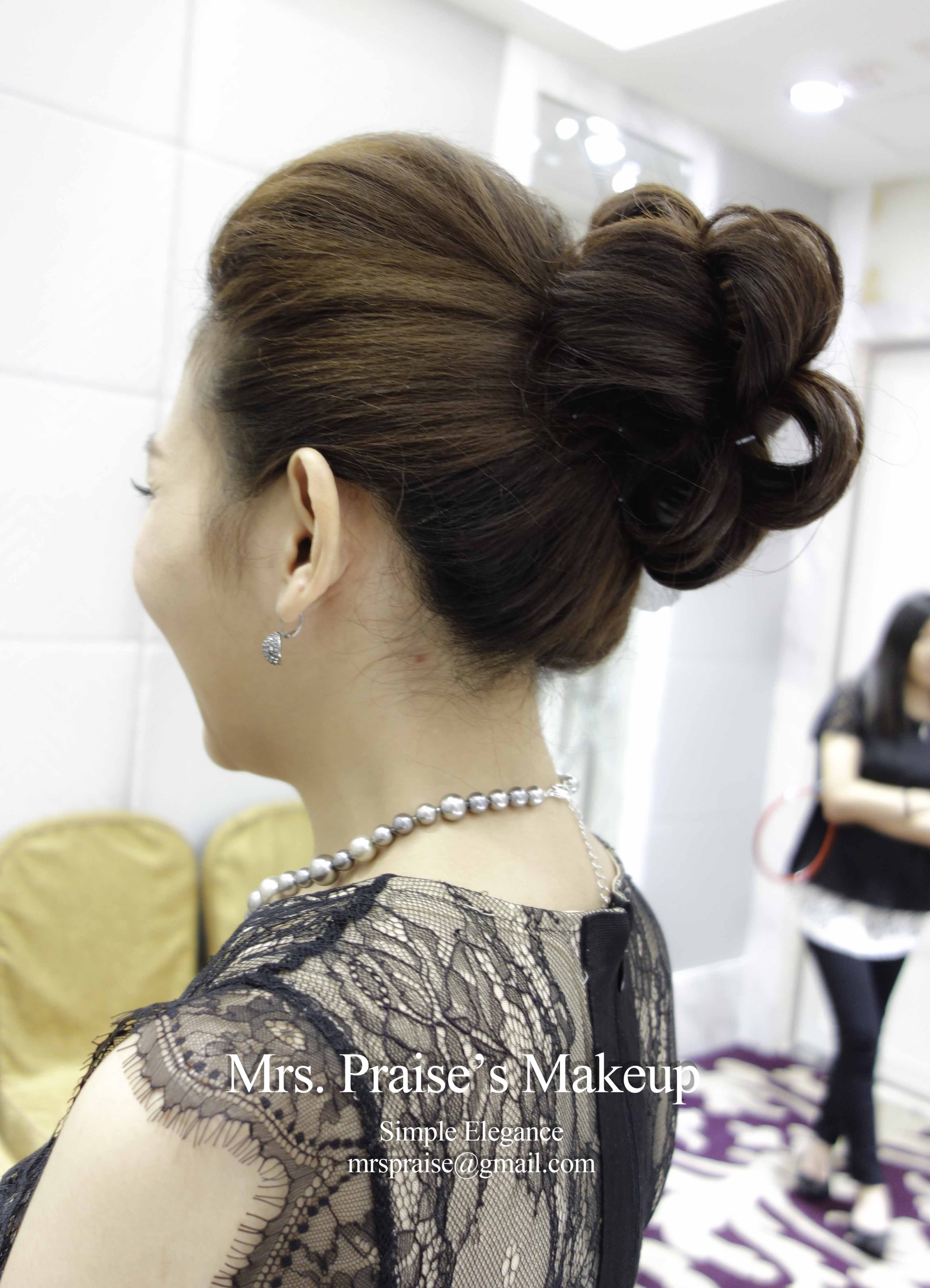 伯母和家人們十分喜歡Pat的晚宴裙褂髮型,伯母過來拉著我的手,謝謝我為女兒扮靚,還說希望將來細女出嫁時可以找我當化妝師。