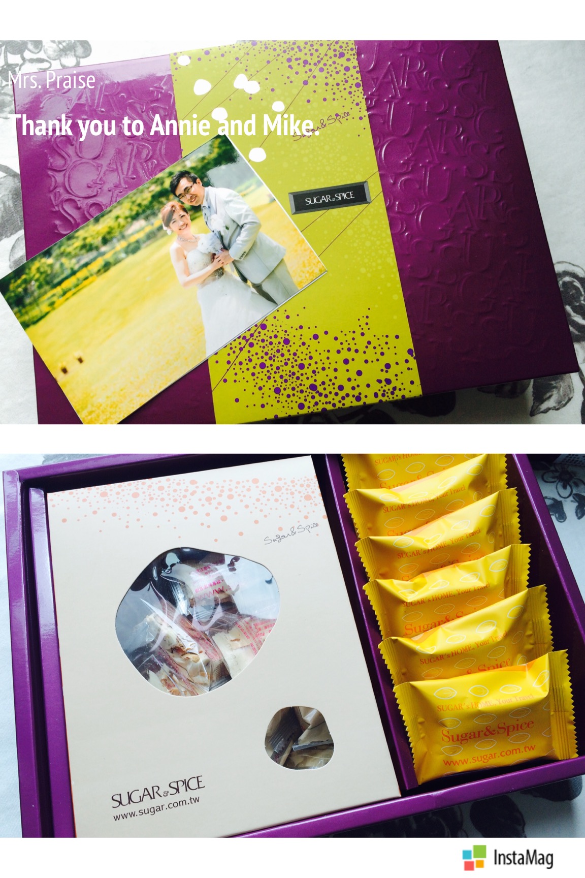 也許你不會相信,有時我會想起一些可愛的客人的。坦白說,接觸的人多,要把所有人記住是不可能的,能讓自己記憶深刻的人,當然是與眾不同,而且跟我有很多互動的。前日早上,心靈昏昏沈沈,教班教到失聲,忽然收到郵差先生送來了一份重重的包裹,一打開,原來是Annie & Mike 送給我的大大盒手信,還有Annie親手造和寫的感謝咭,看罷很感動很感動,淚水是忍不住了。我對Annie和Mike依然記憶猶新:Annie人靚心靚,很愛笑,人很真誠,對我是百份百信任;Mike是少有會照顧化妝師的新郎,人很隨和又細心。