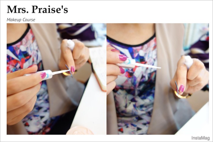 還記得第一次見Ada的時候,她當時忙工作很忙碌,精神和皮膚狀態俱不佳。今次再見面,她是皮膚狀態好得多了,而且能夠感受到她堅定的學習決心。除溫習初階化妝班的內容,她也學了一些新技巧,例如使用假眼睫毛。知道她稍後要代表公司上台領奬,我就教她上鏡後更漂亮的化妝方法。