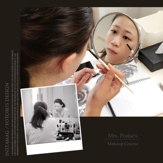 學生繼續參加第二堂<一對一個人化妝班>,皮膚質素明顯轉好,光滑了,乾紋少了,水份多了。雖然忙於照顧家庭和孩子,她也笑說:真的不可以偷懶!因為只是花多一點點時間,效果很明顯。學生聰敏,手部協調不錯,為何未能化出靚妝?問題出於她的化妝品和手勢。粉式是偏乾身的,在墨爾本乾上加乾,適合油性皮膚卻不適合她用,顏色呢?錯的,太深色!加上手勢力度不對,我告訴她要轉粉底,又介紹了另一款更好的給她。用後她開心地說,怪不得用了粉底又不見得臉色轉好,現在知道問題所在,化靚妝就不是遙遠的事了。