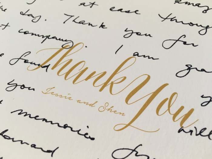 新娘子Jessie 送我的感謝卡 發表於14 十二月, 201625 三月, 2017 作者: Mrs. Praise in 新娘化妝 有天,收到新娘子Jessie越洋寄來的thank you Card和USB。 USB裏頭是婚禮當日所有的照片,Jessie跟我分享它們,不但讓我為工作留下完整記錄和回憶,她也很樂意我跟大家分享。心裏只有滿滿的感謝。 thank you Card那天我看了三遍。然後放在桌上,每當工作累了就拿來看一遍。 客人送給我的感謝卡我全部都好好收藏,這是人生裏面很美好的回憶。多謝Jessie喜歡我為她設計的造型,喜歡當日的化妝和髮型。 我會繼續努力的。 分享此文: 按一下以分享至 Facebook(在新視窗中開啟) Facebook 按一下即可以電子郵件傳送連結給朋友(在新視窗中開啟) 電子郵件 喜歡 正在載入... 相關