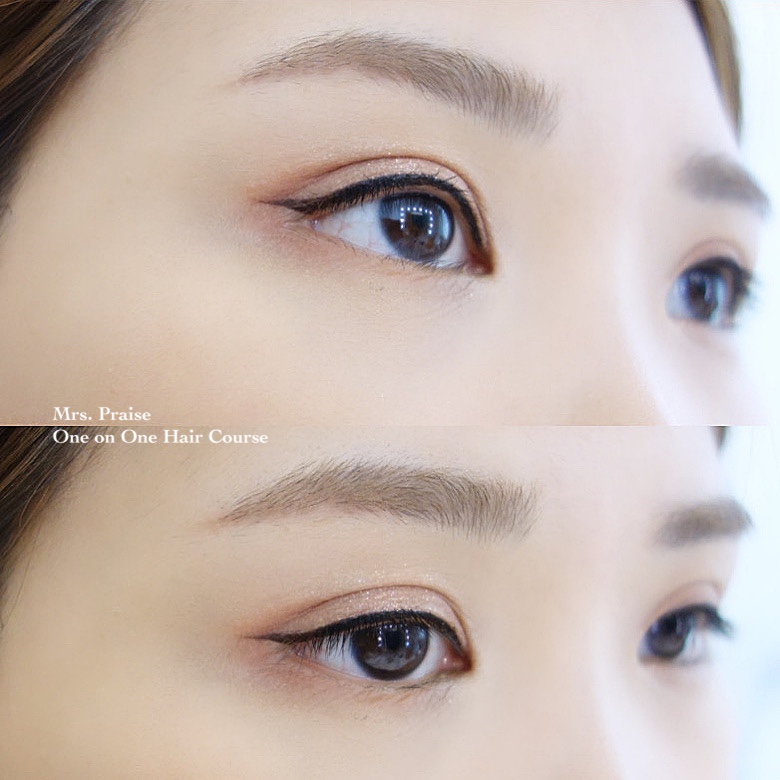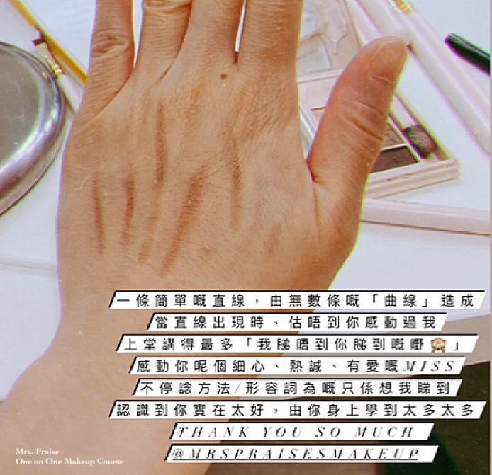 在<一對一個人化妝班>𥚃,我給學生示範怎樣畫眼線, 一分鐘便完成了。