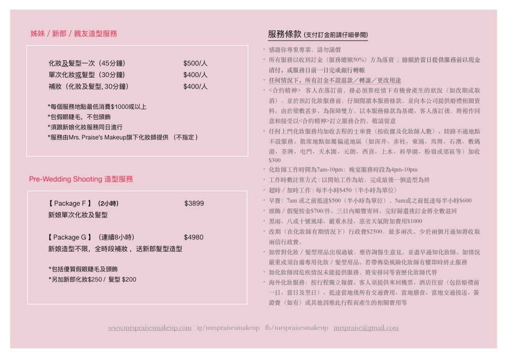 價目表資料和條款將不時更新,最新版本以本網頁公告為準,恕未能個別通知,已完成預約的客人不受影響。