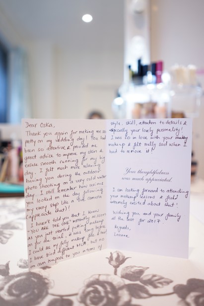 Leanne結婚時,已經跟我說會報名參加化妝班,她很喜歡我為她化的新娘妝。