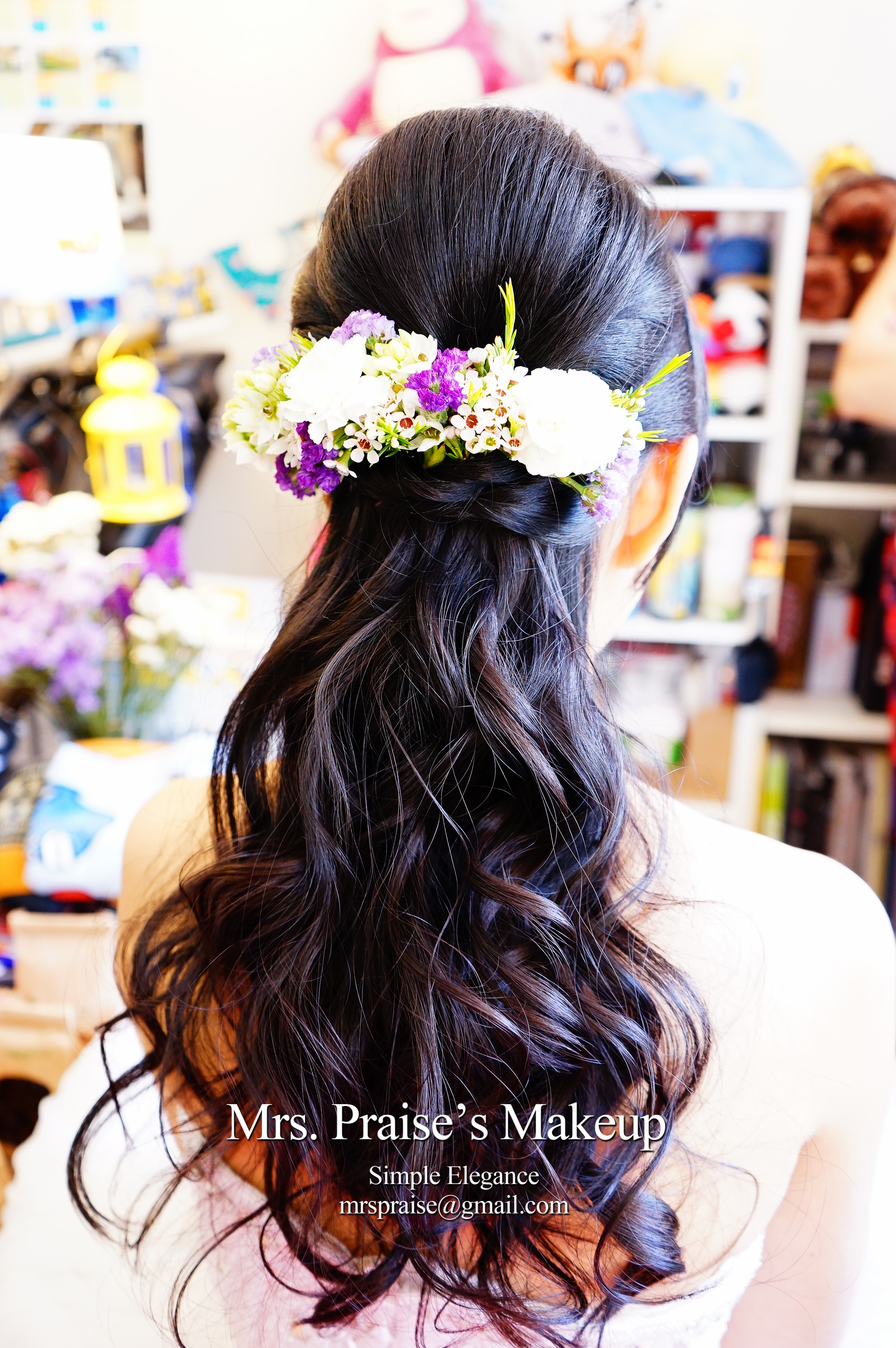 最後,我用了4種鮮花完成半花環的造型。Ivana喜歡已經是最大的回報了。
