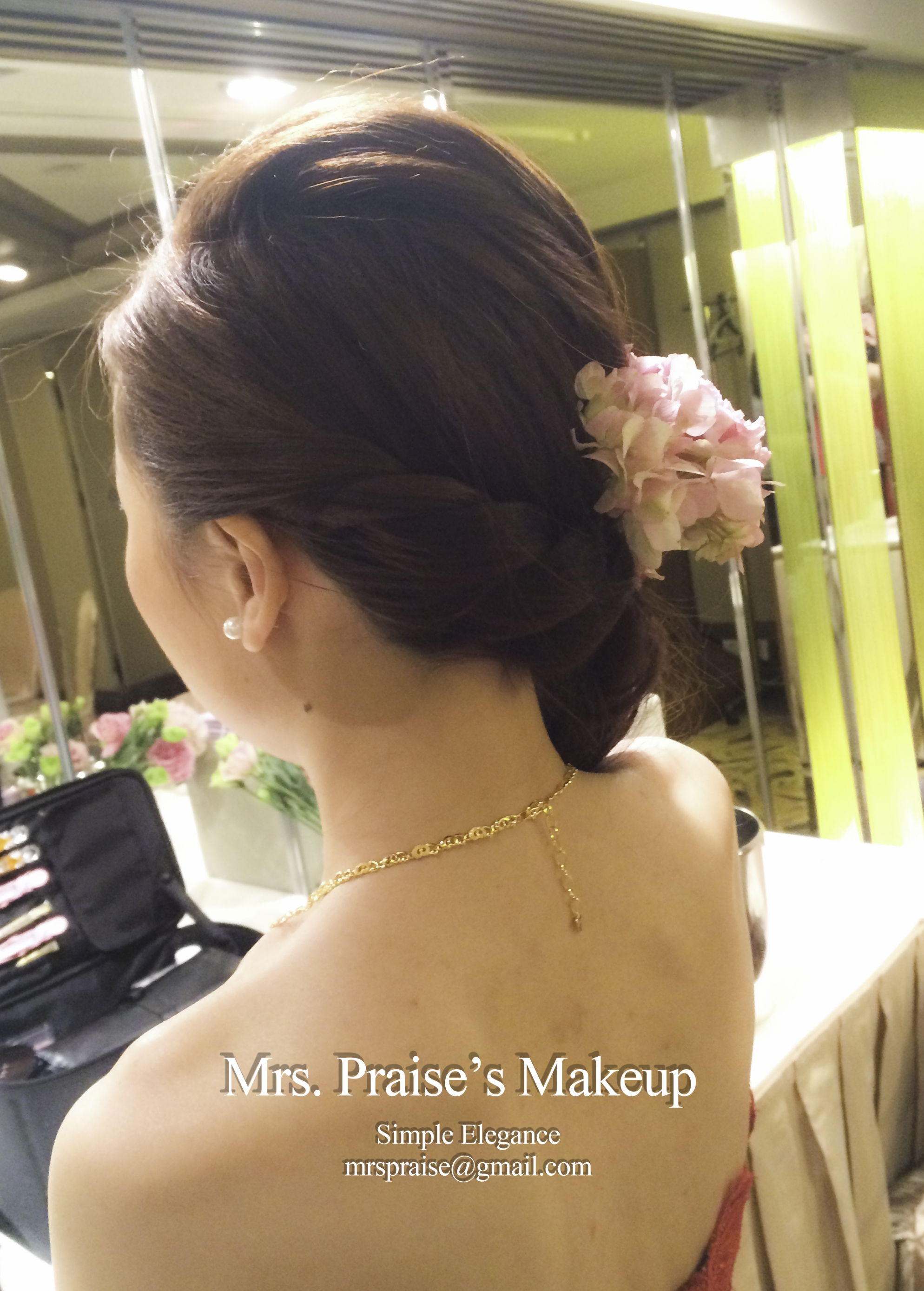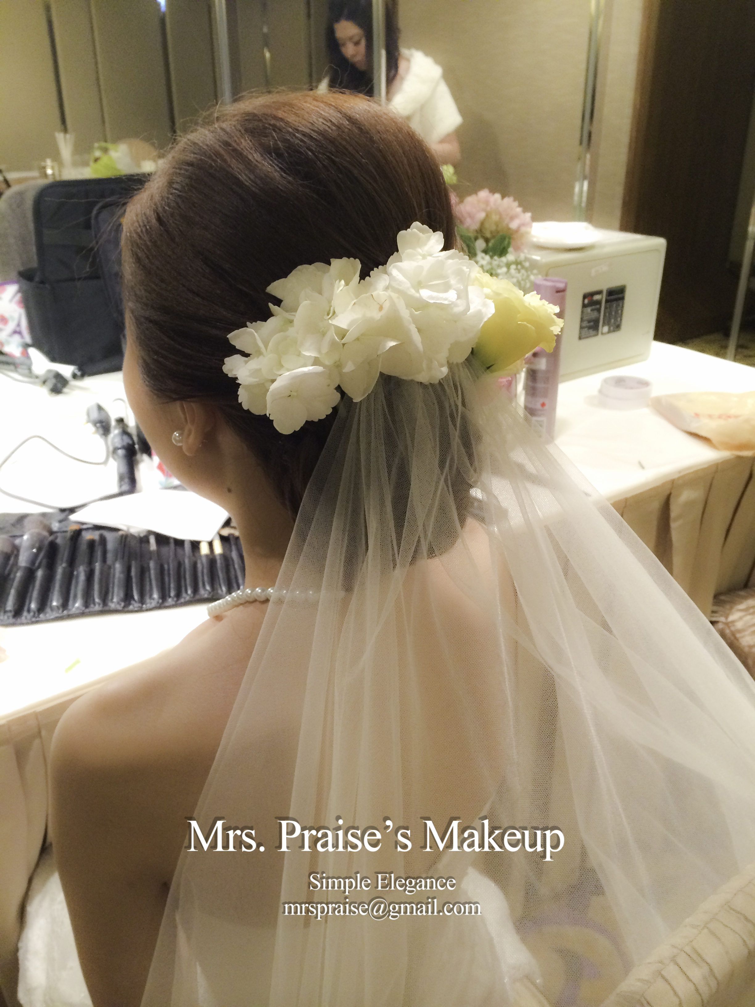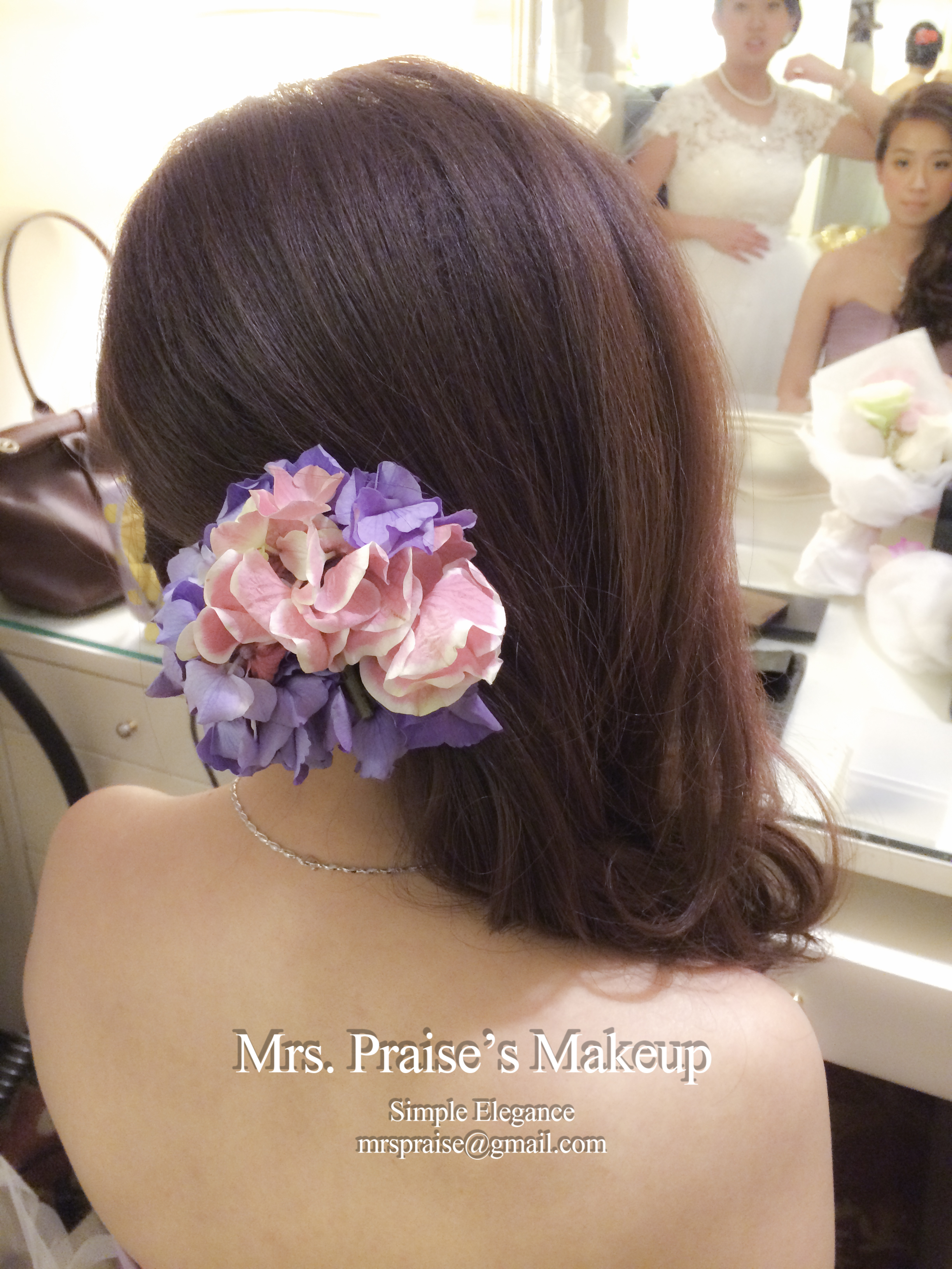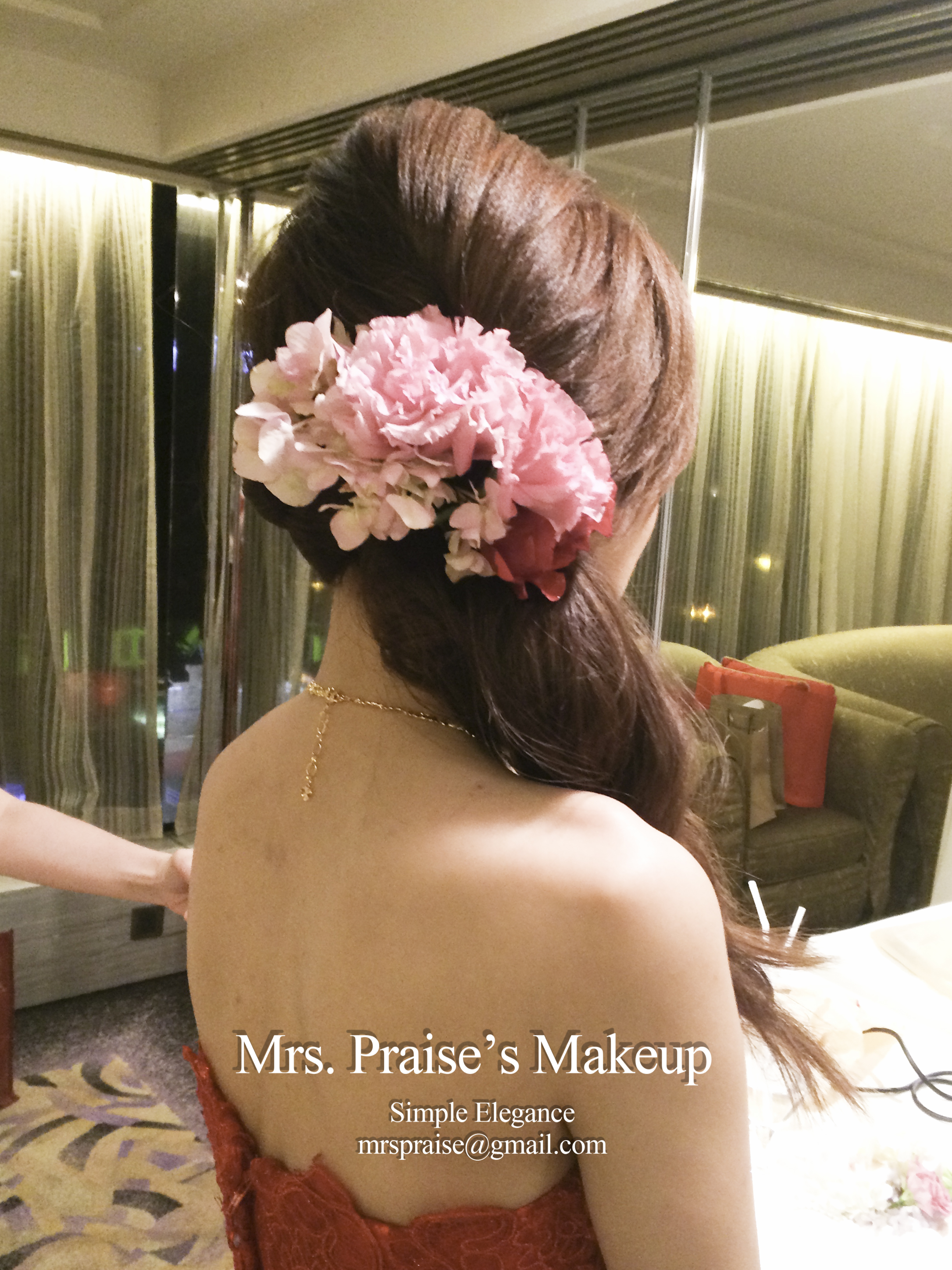 敬酒造型!這是Wylie要求的側髻造型,加上鮮花是立即變得SWEET了。