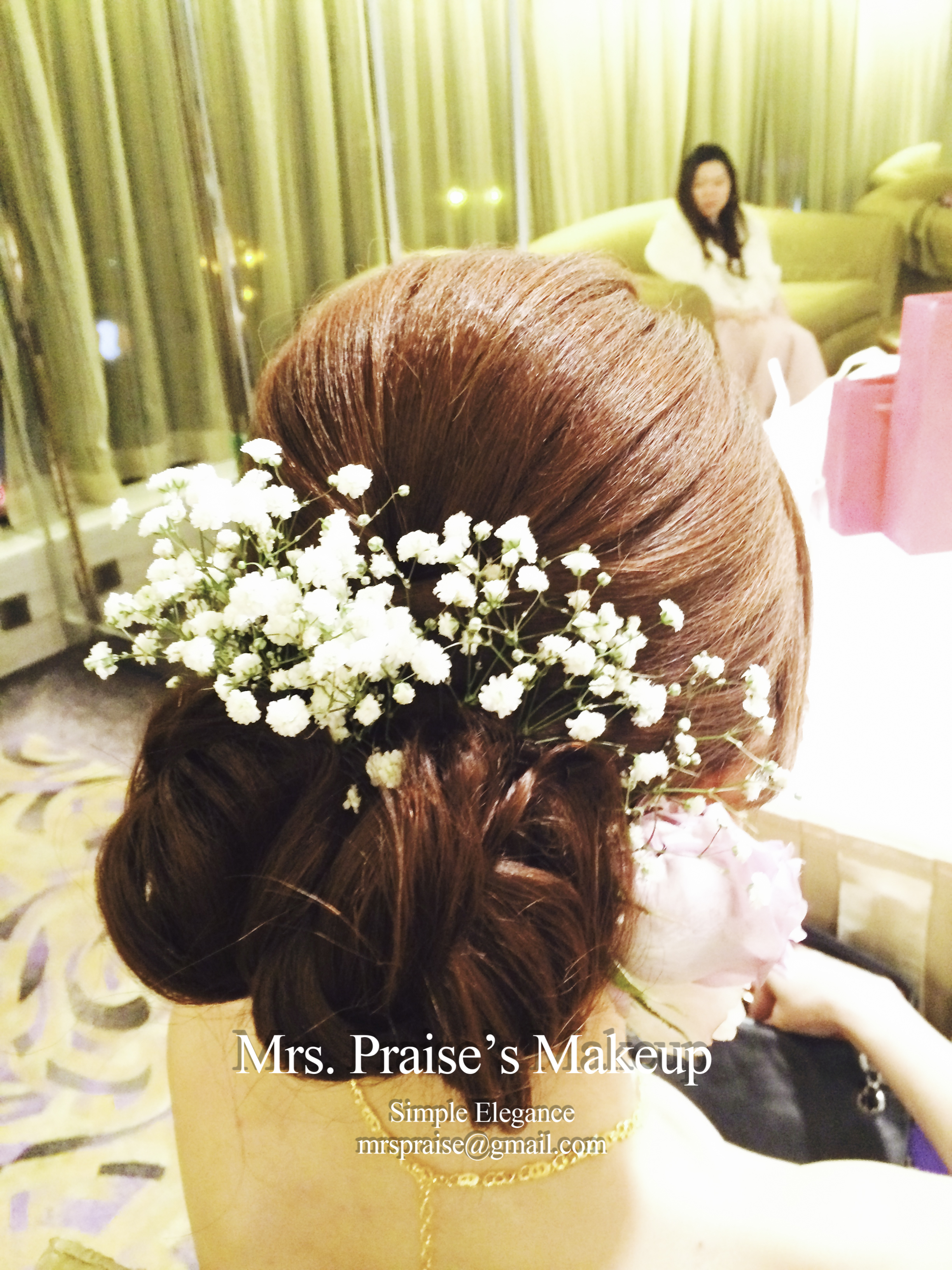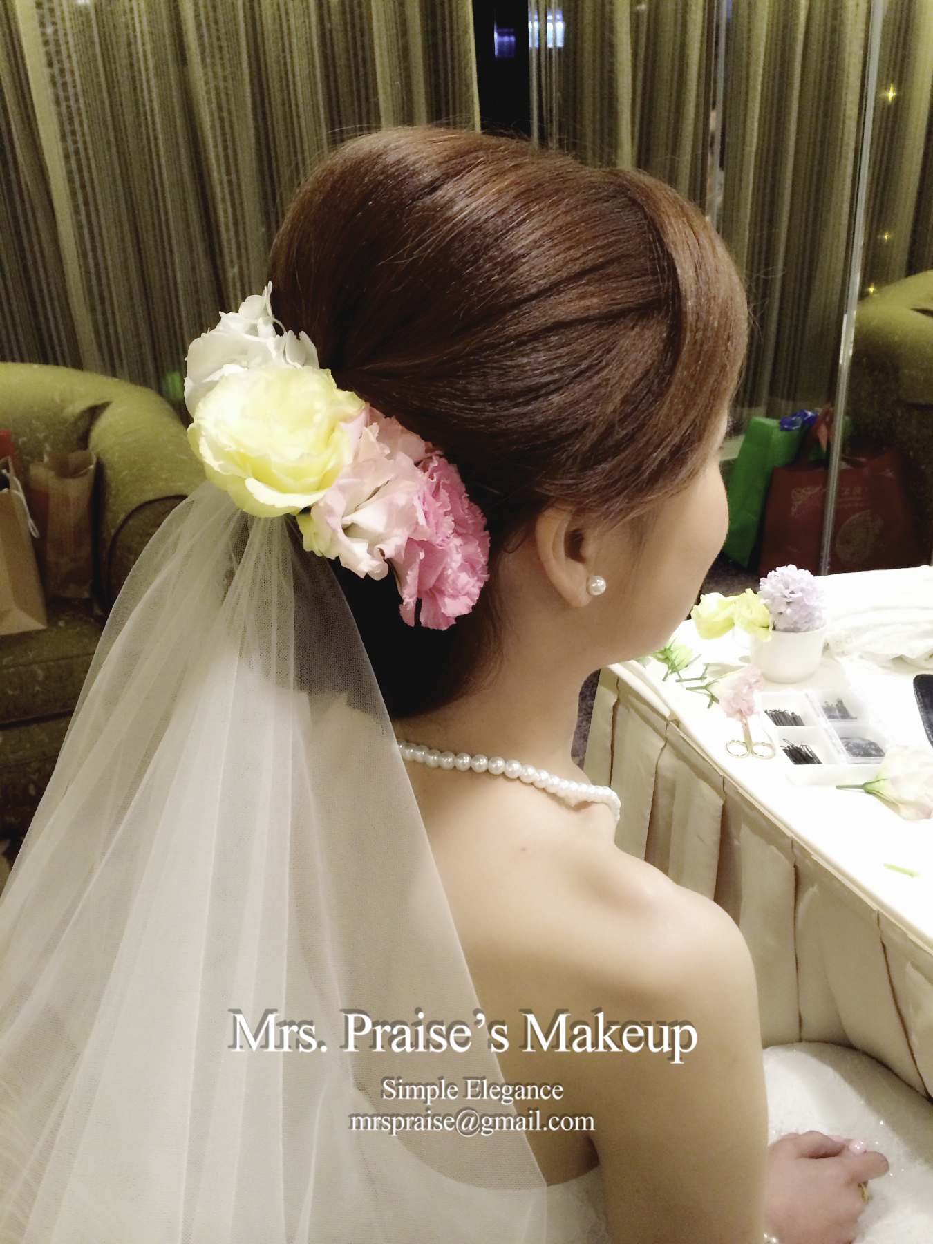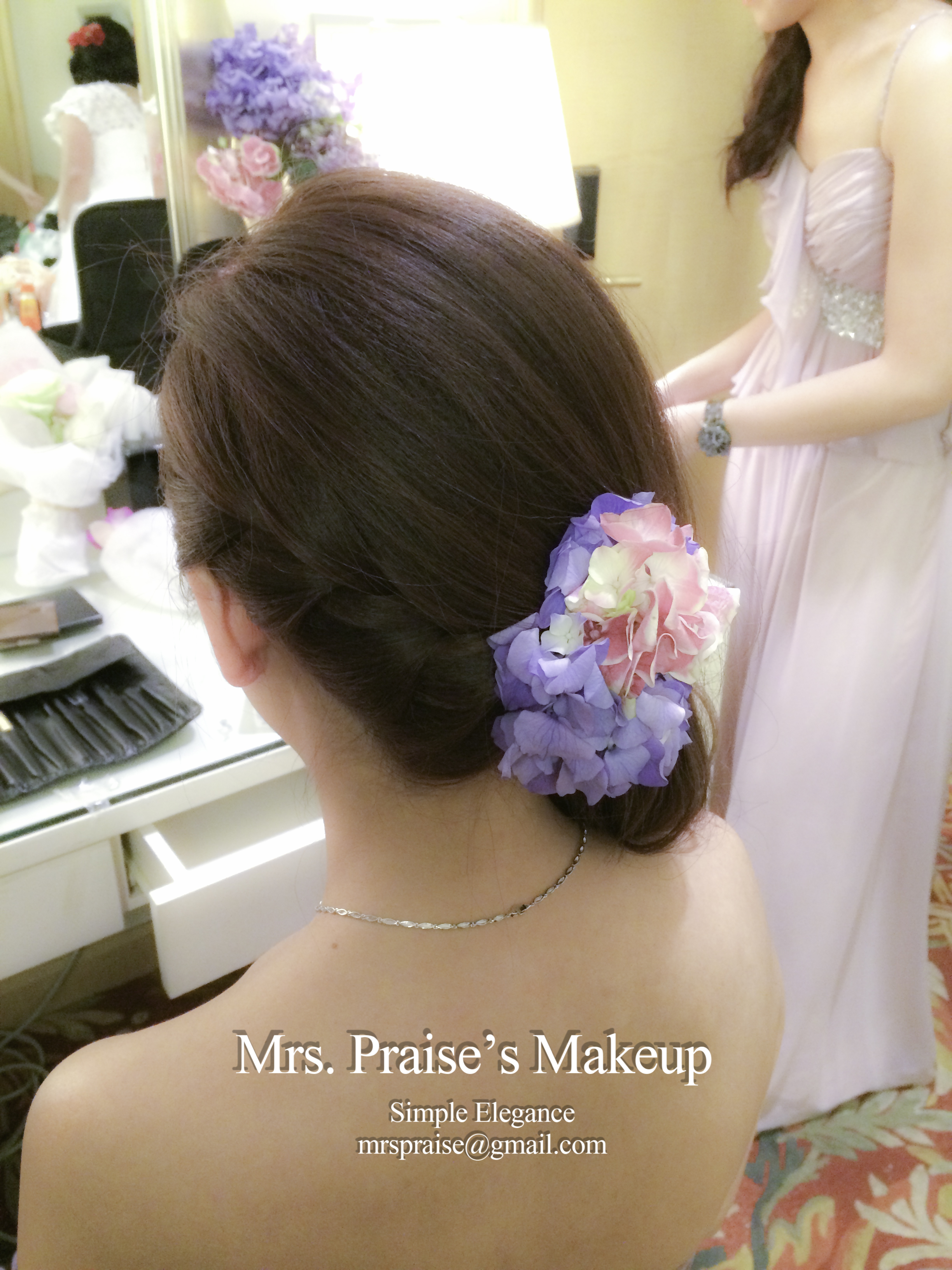 敬酒造型!這是Wylie要求的側髻造型,加上鮮花是立即變得SWEET了。