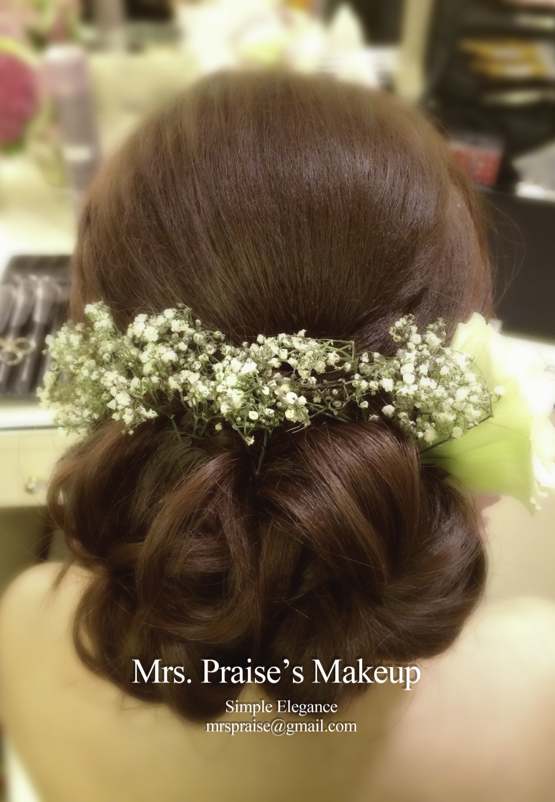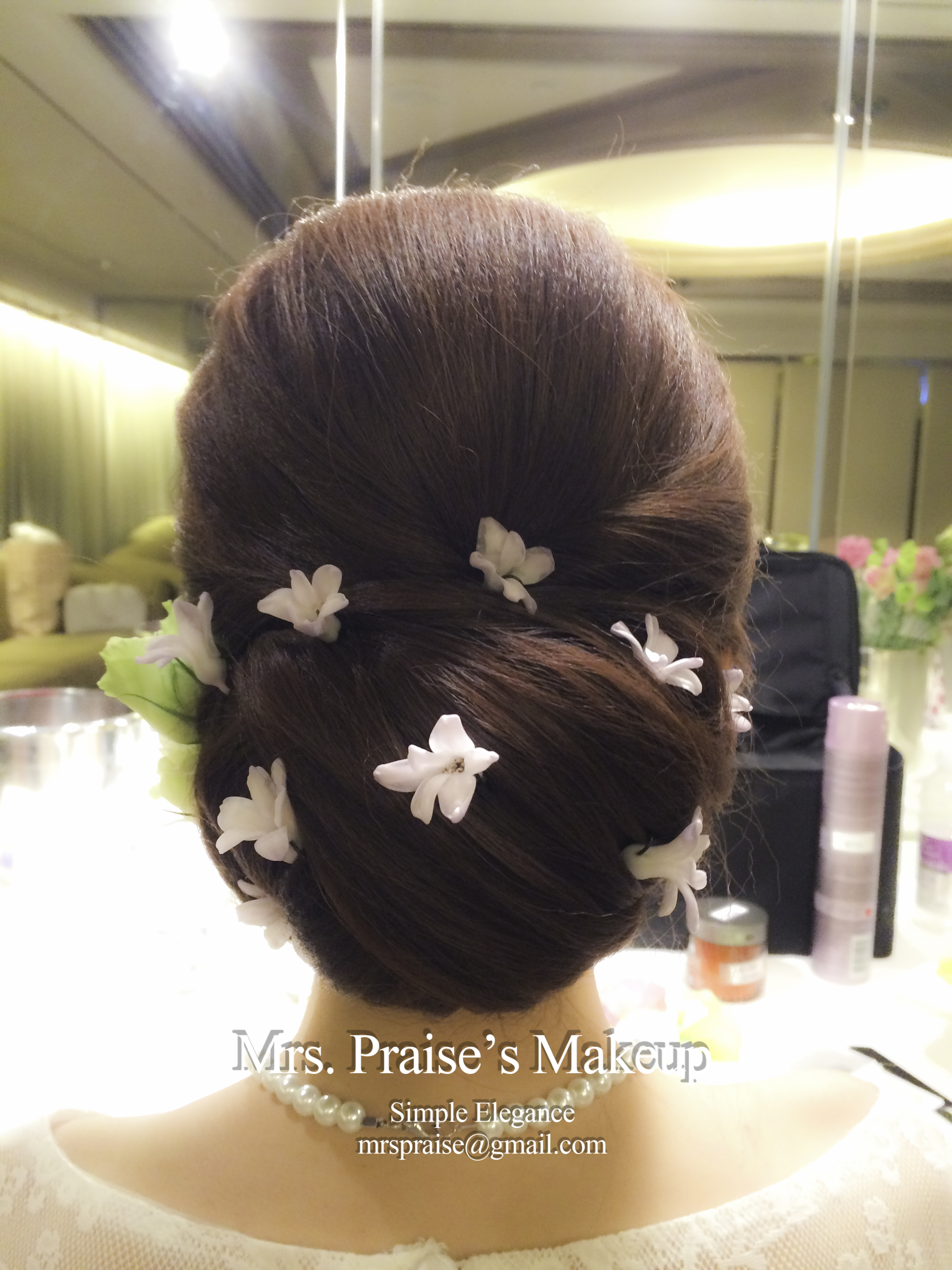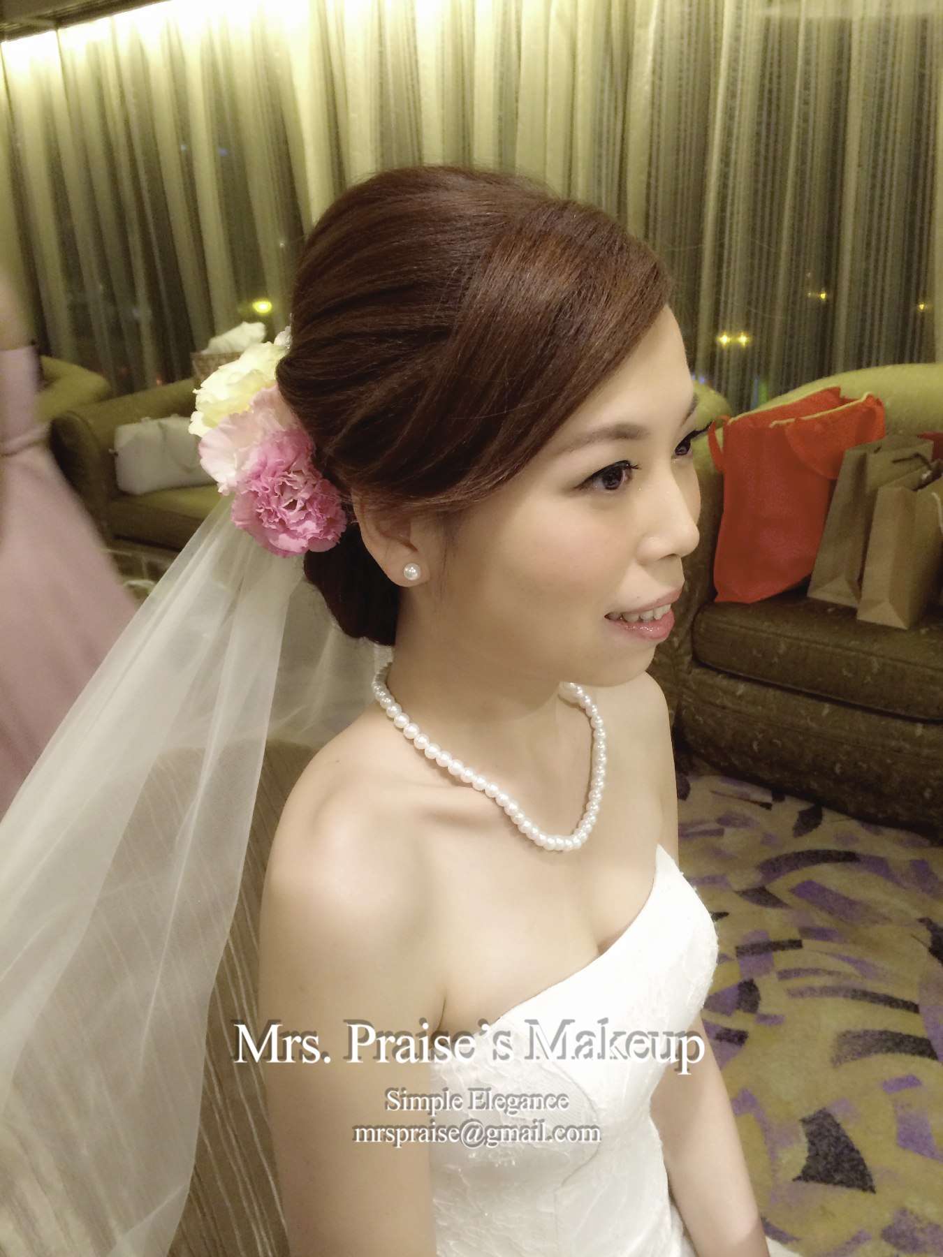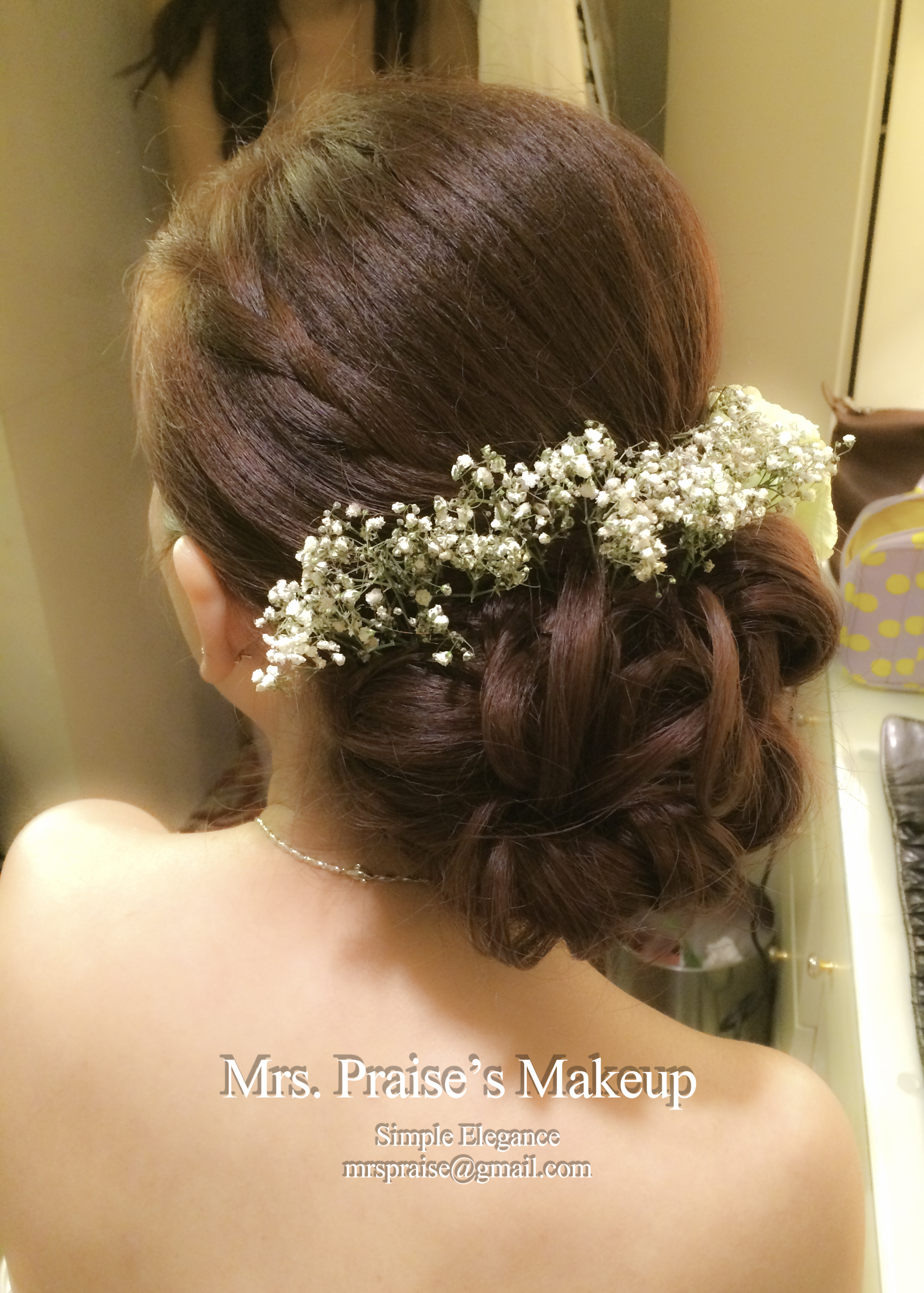 敬酒造型!這是Wylie要求的側髻造型,加上鮮花是立即變得SWEET了。