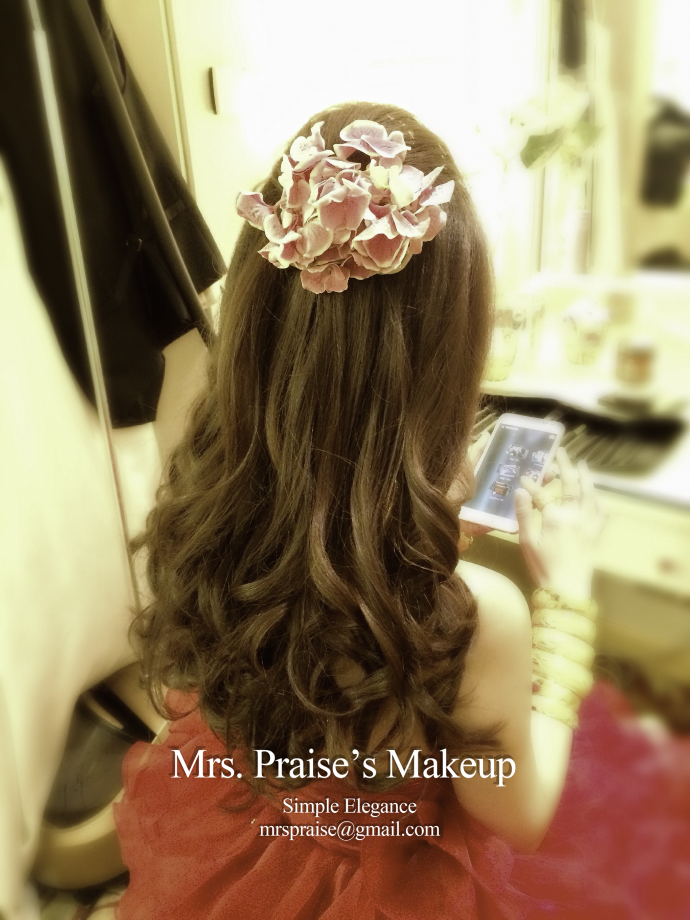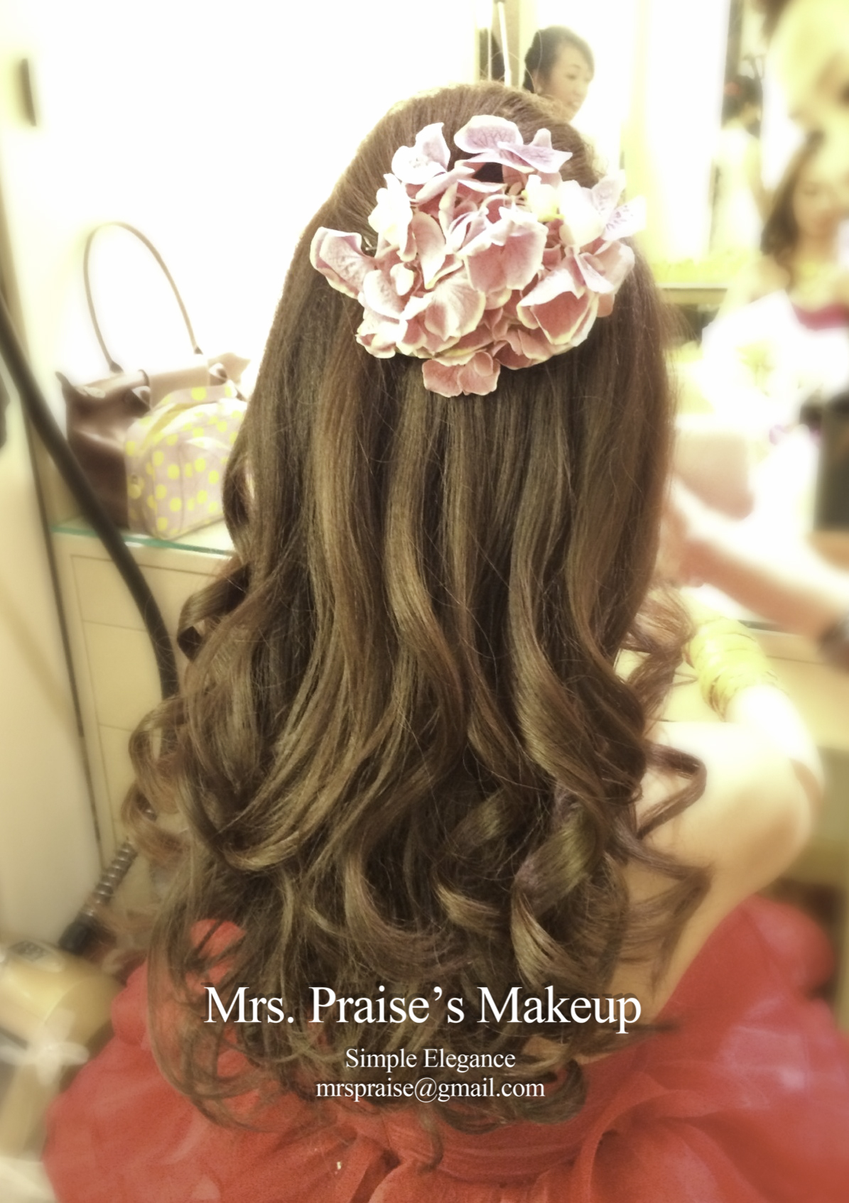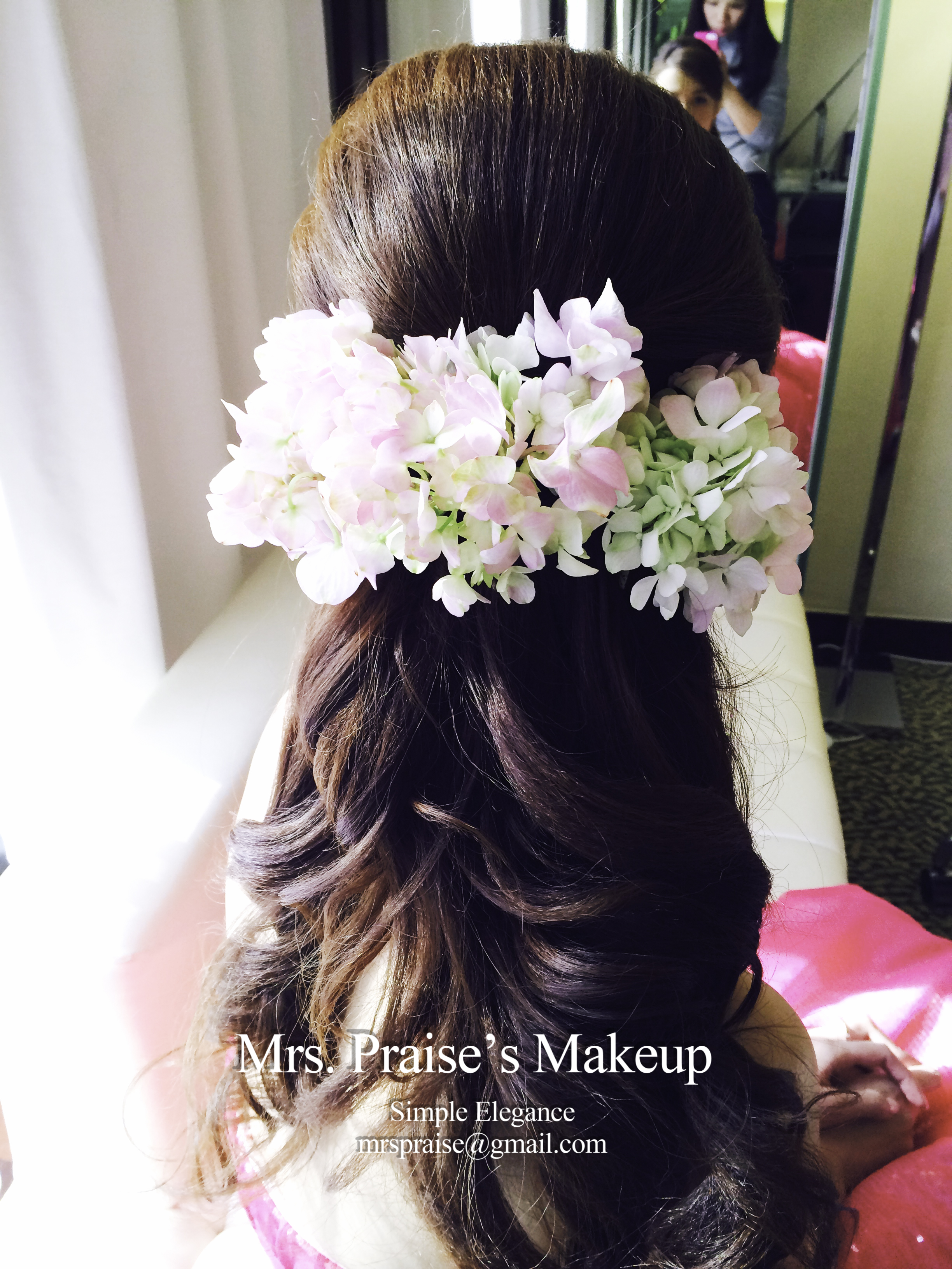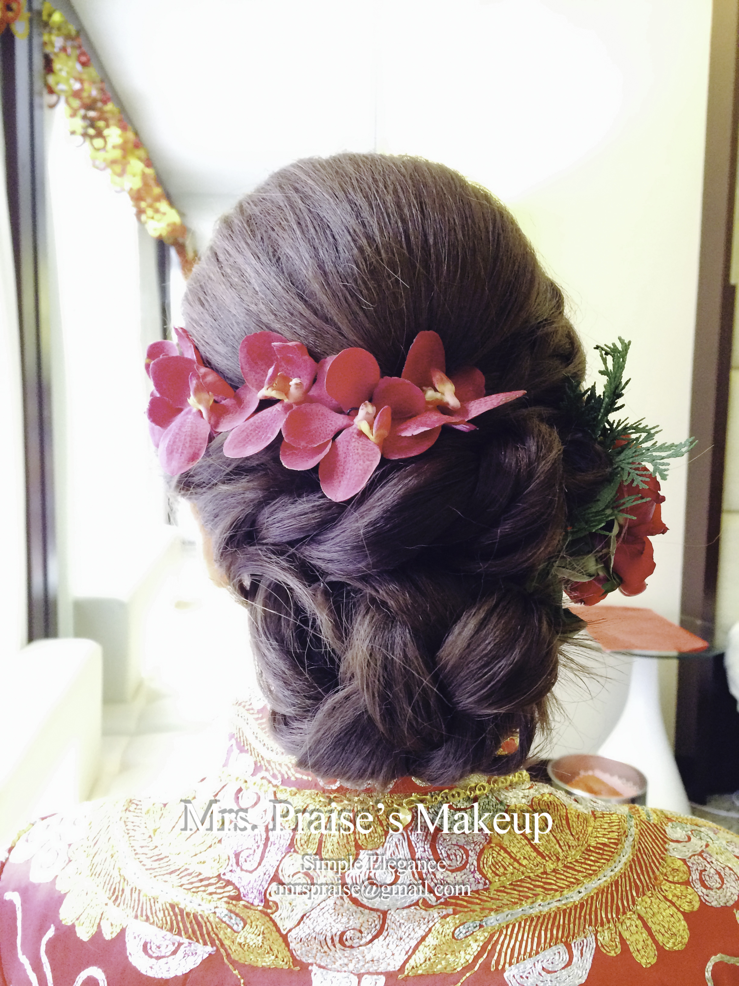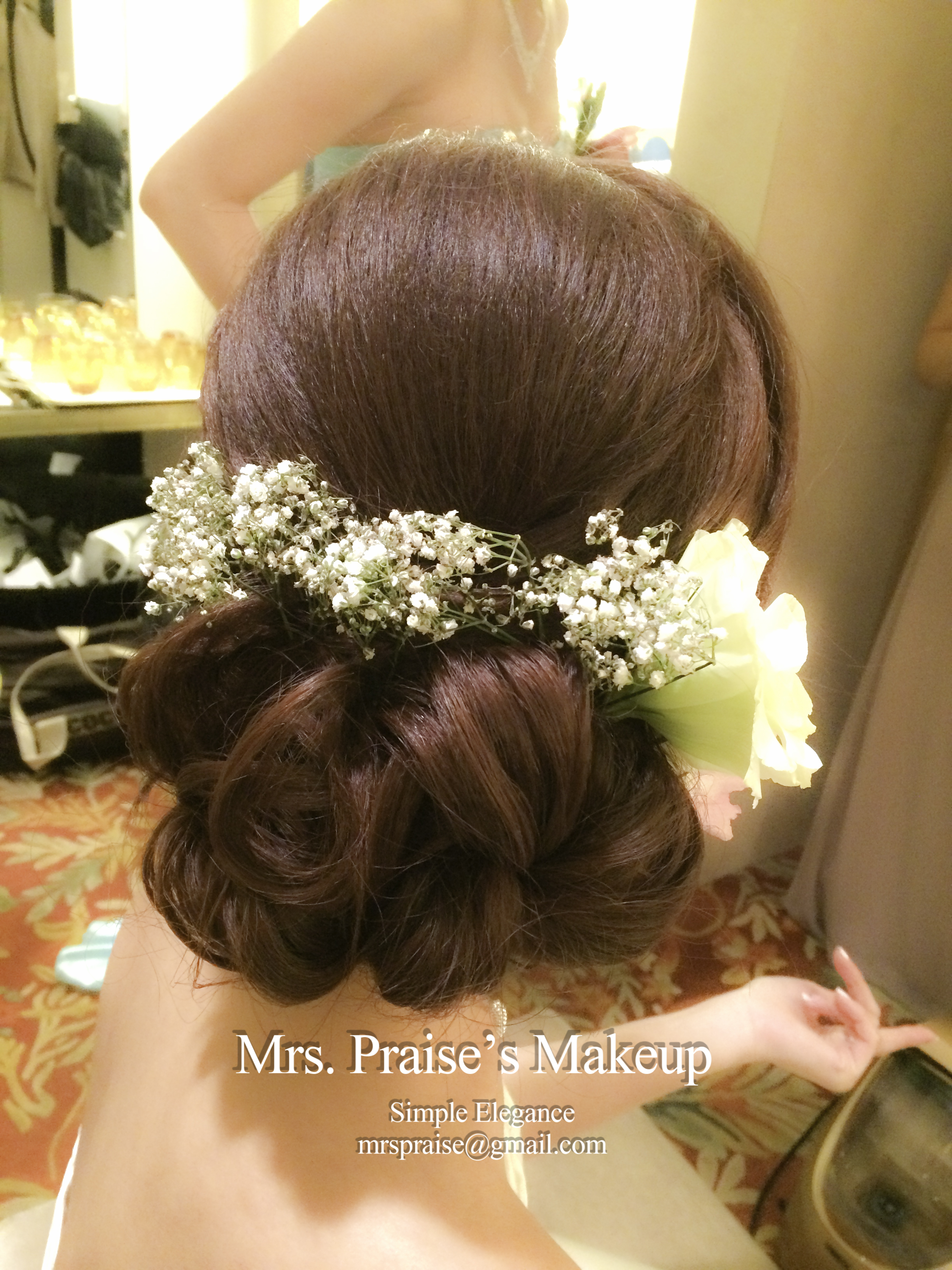 Wylie對造型很有要求,婚前很努力做research、找reference。事前我也看了很多資料,希望讓她有一個美好的大日子回憶。後來她告訴我喜歡當日所有造型,鮮花造型更深得她喜愛,這時我才放下了心頭大石呀!努力是不會白費的!