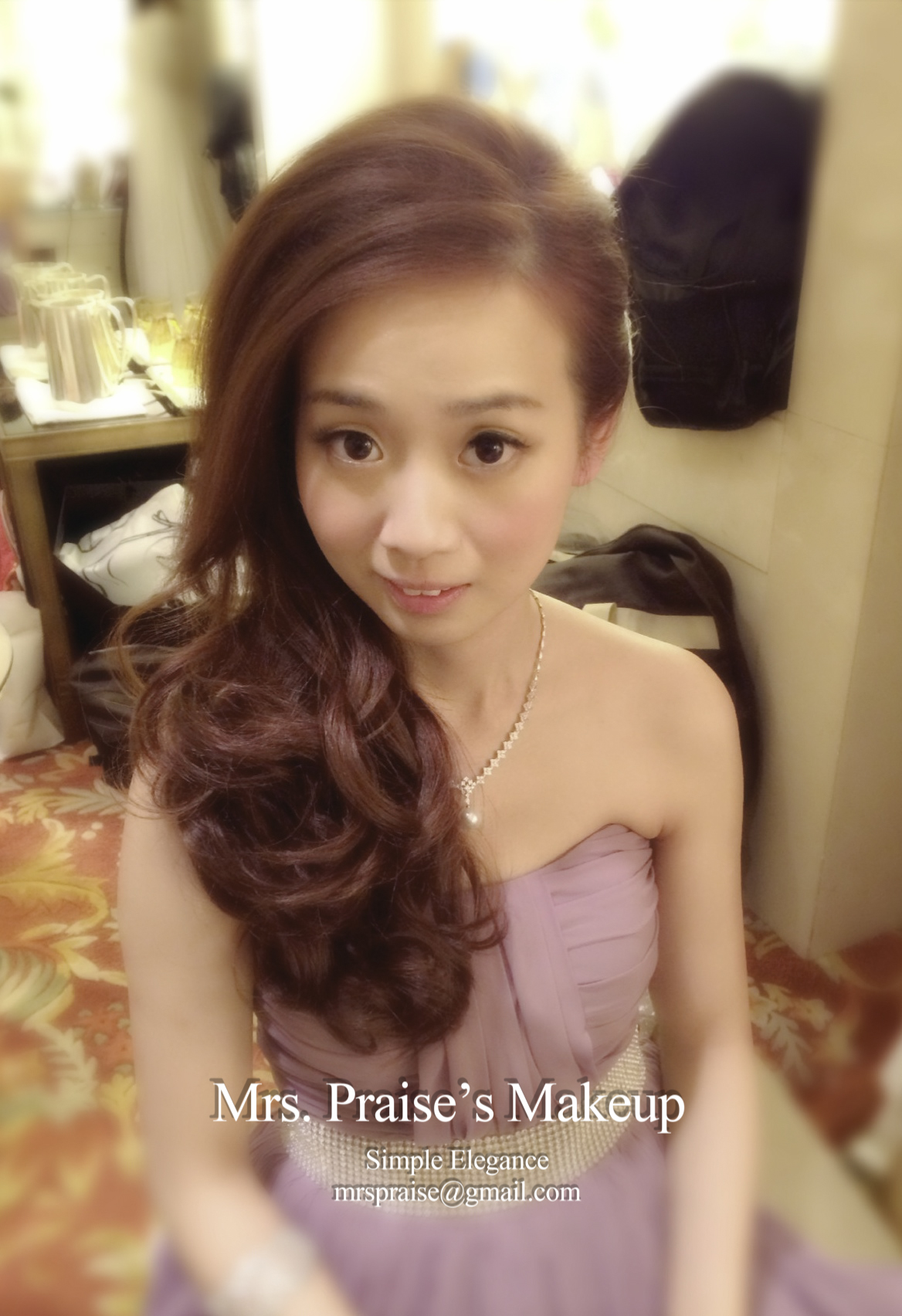 進場喇!Wylie想用自備的皇冠,為了看起來更ELEGANT,我造了這個盤髮造型。