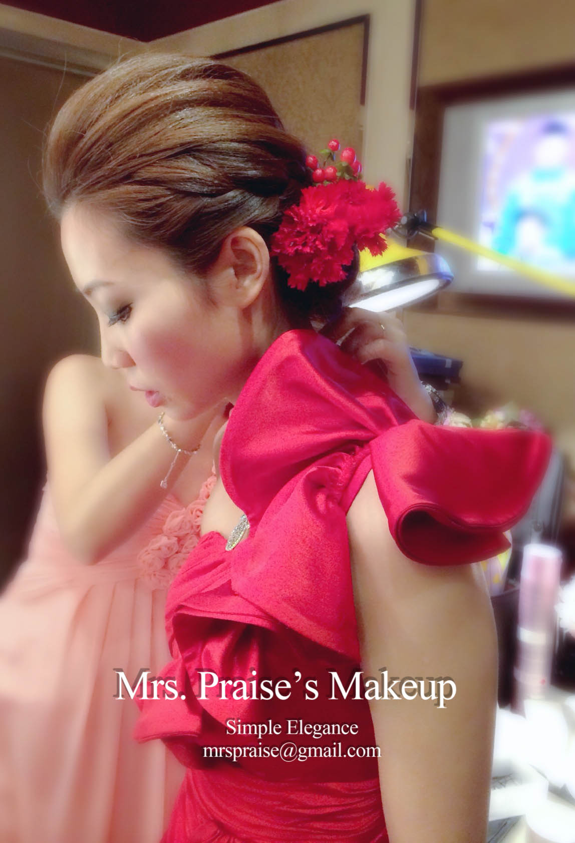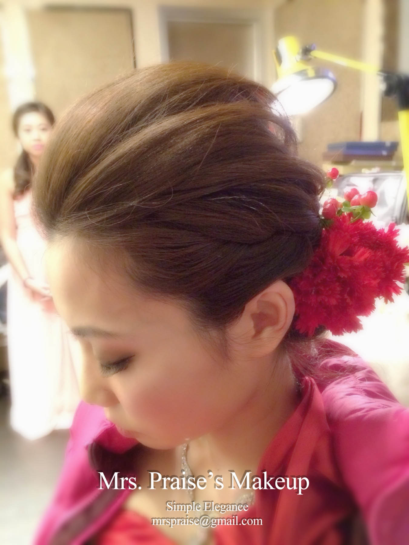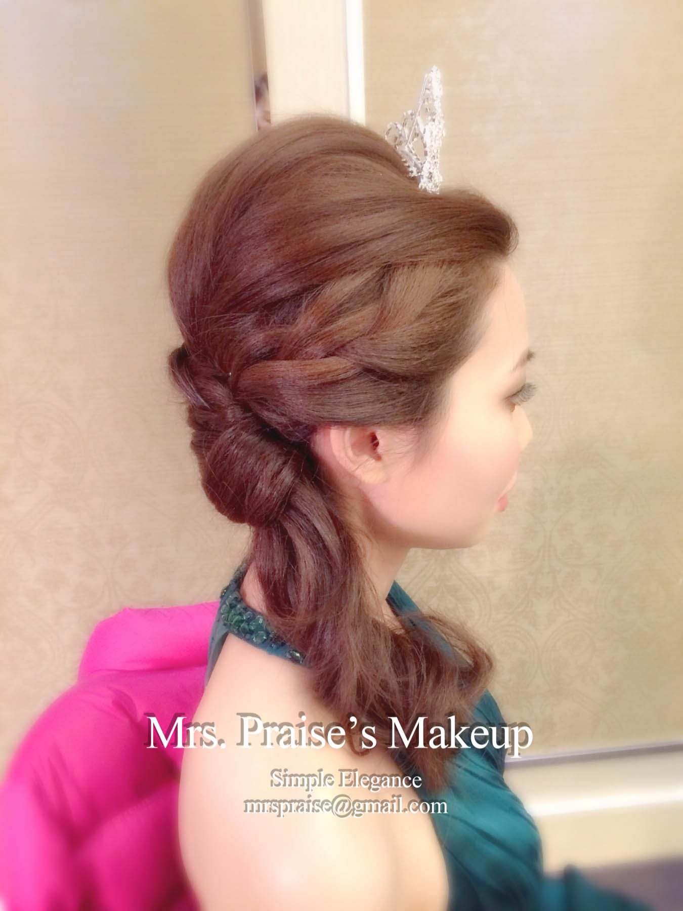 (上)敬酒晚裝很好看,我把髮型改成了更鬆的ALL BACK 和加入了BRAID STYLE。CORIA頭髮不算長但量多,我也善用了這個優勢。