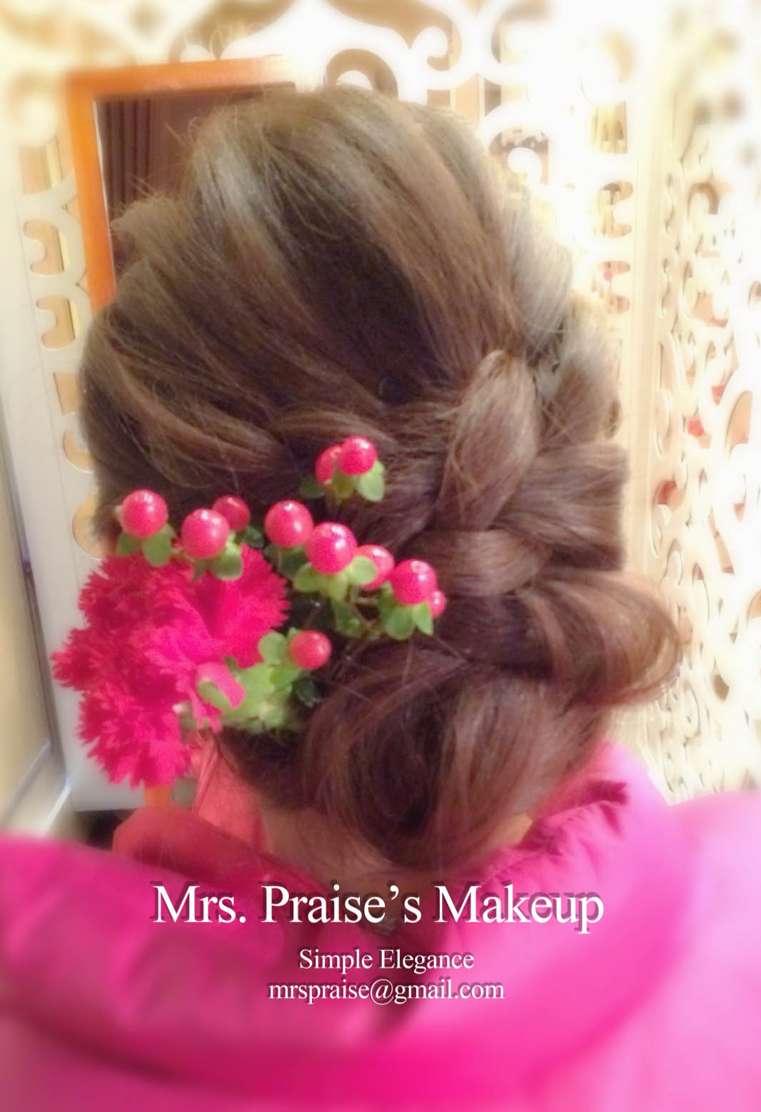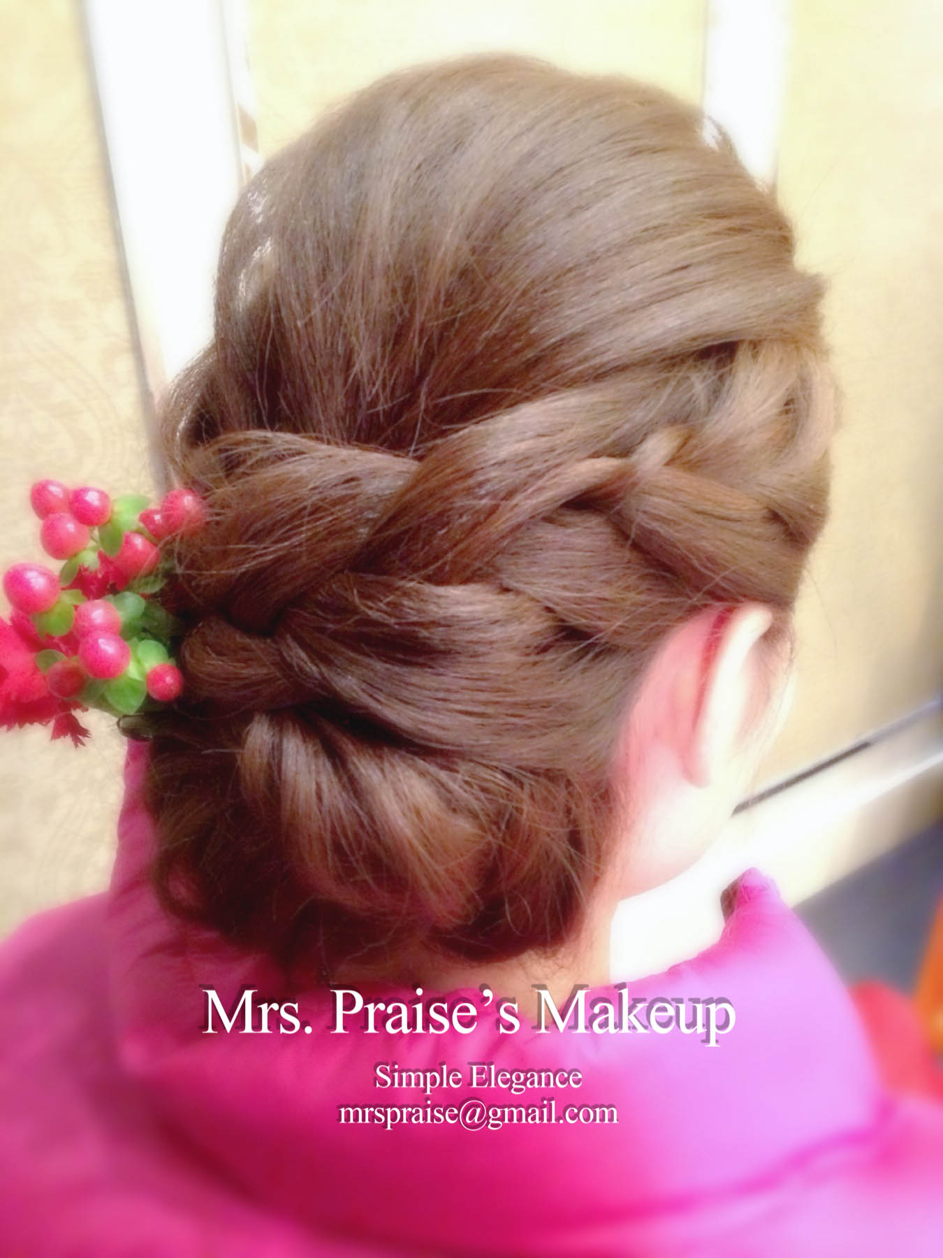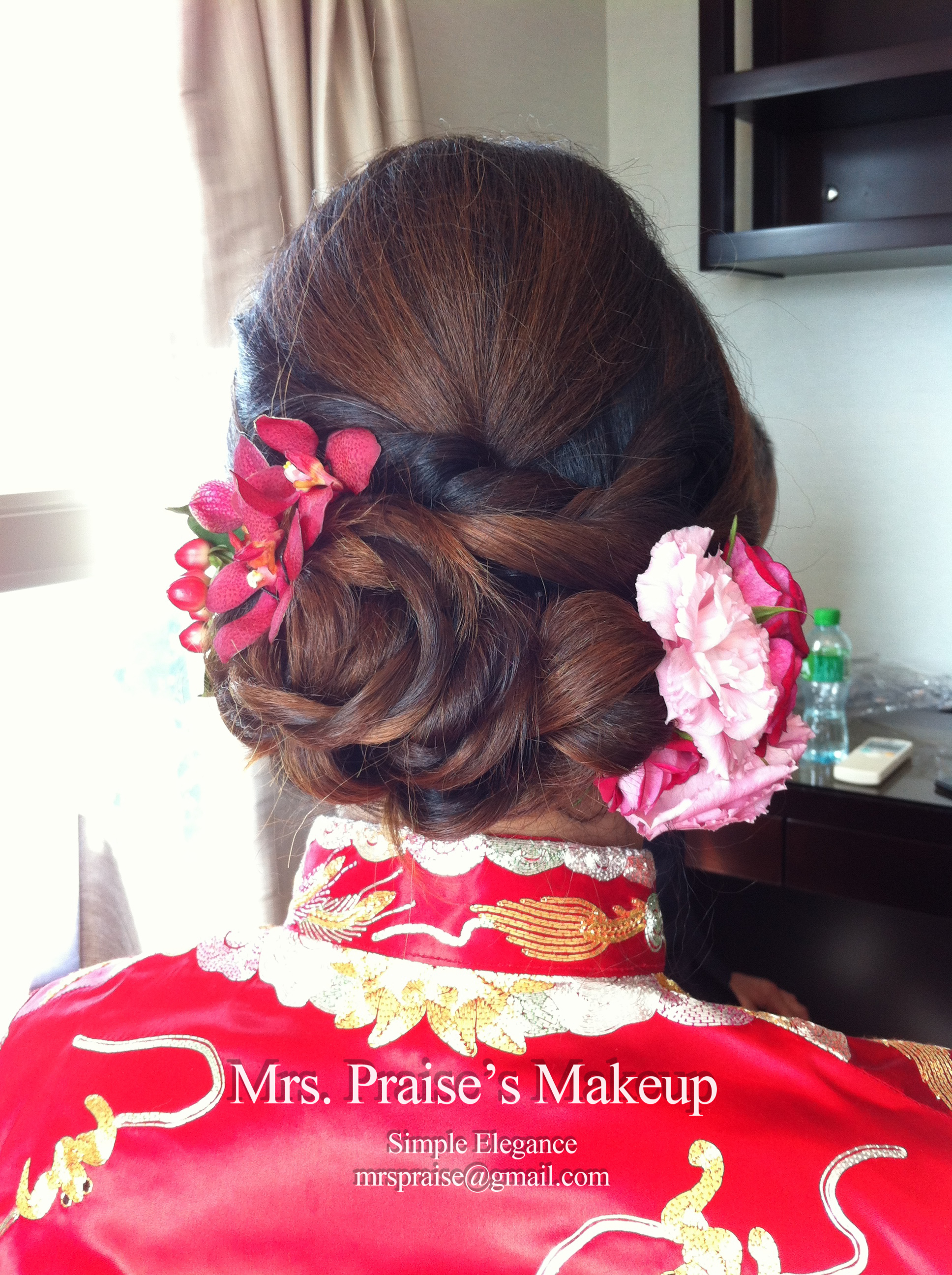 (上)敬酒晚裝很好看,我把髮型改成了更鬆的ALL BACK 和加入了BRAID STYLE。CORIA頭髮不算長但量多,我也善用了這個優勢。
